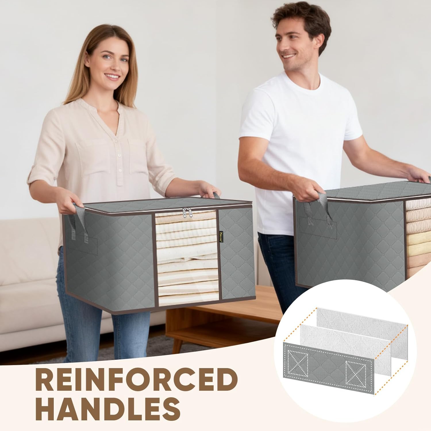 BALEINE 4 Pack Clothes Storage Bags, 16 Gallon Storage Containers with Reinforced Handle, Sturdy Zipper, Closet Organizer for Blanket, Comforter, Pillow, Bedding (Grey, 4 Pack)