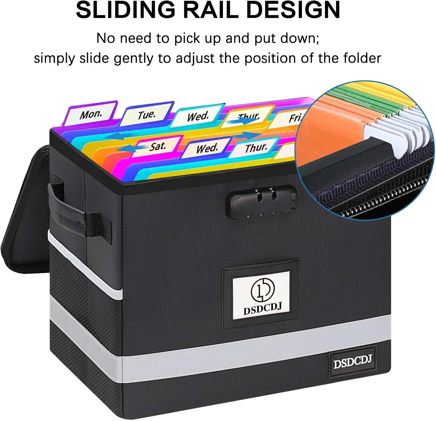 - 【Various Thoughtful Designs】The 3 handles make it easy to transport your fireproof file box anywhere. The design of reflective strips allows you to quickly find your fireproof document box even at night to protect your important items. Smooth PVC slide rails on both sides of the opening allow you to slide the folder effortlessly. Foldable design makes it easy to store and save space when not in use