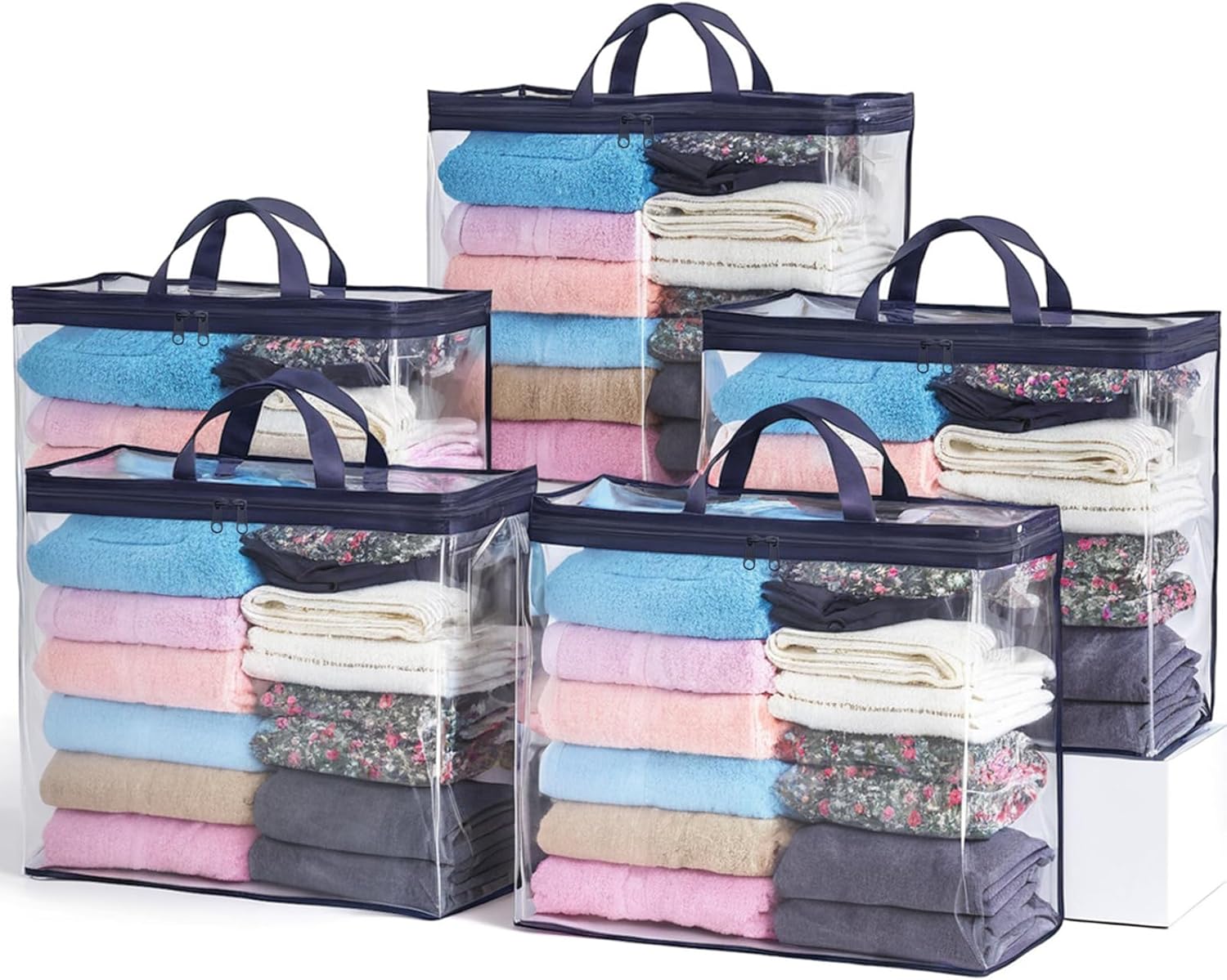5 Pack Clear Storage Bags for Clothes, 22L Blanket Storage Bags, Under Bed Storage, Closet Organizers Bag, Upgraded Version Two-Way Zippers Design(Navy Blue)