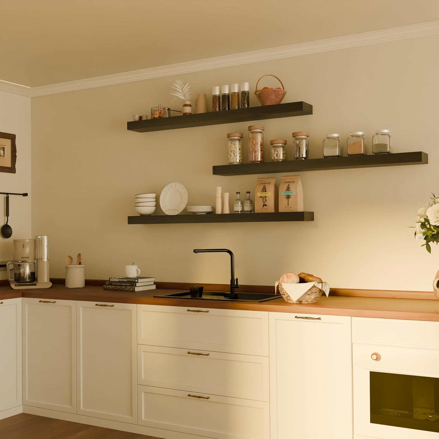- 【No Sagging】Experience the reliability of our deep floating shelves for wall, designed to hold weight without sagging. Our sturdy construction and smart engineering ensure that your wall shelves remain level and stable, even when loaded with books or decorative items, providing reliable support for your belongings
