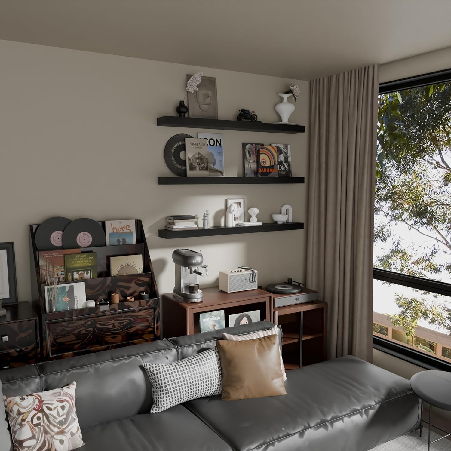 Floating Shelves for Wall, 48 Inch Extra Long Black Wall Shelves, Set of 3, Hanging Invisible Brackets Floating Shelves for Living Room,Bedroom,and Kitchen