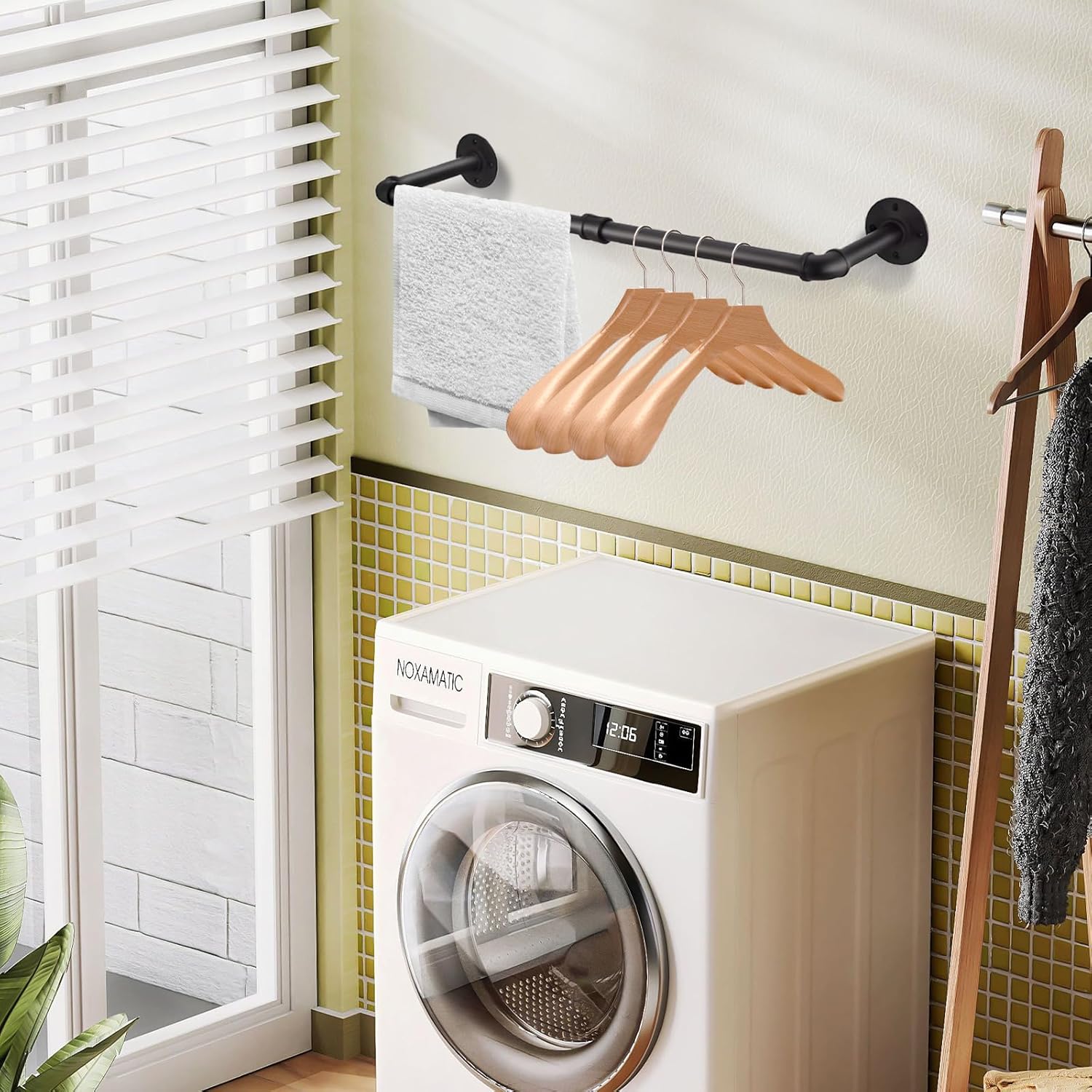 - 【Industrial-Grade Durability】 Built with thickened cold-rolled steel tube & powder-coated black finish, rust-resistant and scratch-proof for long-lasting use in laundry rooms, closets, or garages