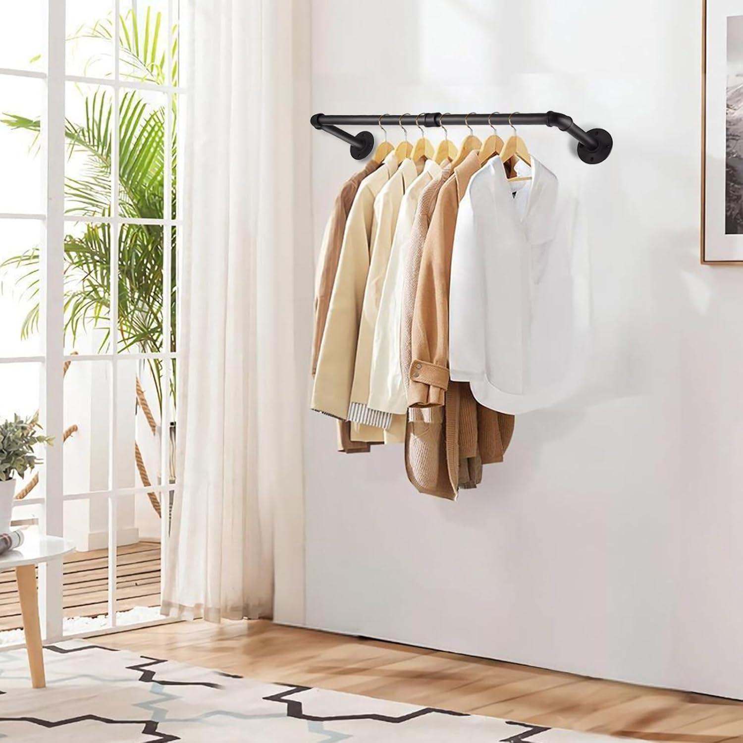 Wall Mount Iron Clothing Rack, Black Steel Laundry Room Drying Rack, Space Saving Coat Closet, 50 lbs Capacity (47 x 11 in)
