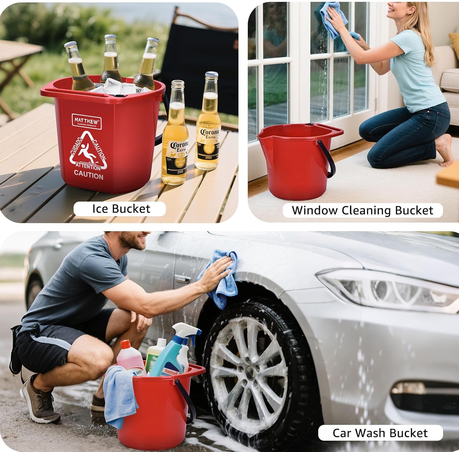 - Color-Code Organization: Make your cleaning process more efficient with recognizable color! Our cleaning pails are designed to help you quickly spot it in your kitchen or cleaning equipment area. Such as: Blue for bathrooms, Red for glass and windows, Black for car washing.