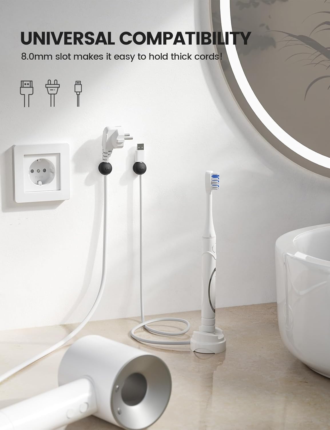 - Strong Magnetic Locking : Our cord holder clips feature 6N strong magnetic suction. Combined with the silicone material and thoughtful angled opening, you can effortlessly snap cables in and out with one hand, and the clips can securely hold phone charging cords, HDMI cords, household wires without popping & falling off. [Installtion Tips] After sticking the cord holders, please WAIT for 30 minutes before use for optimal adhesion.