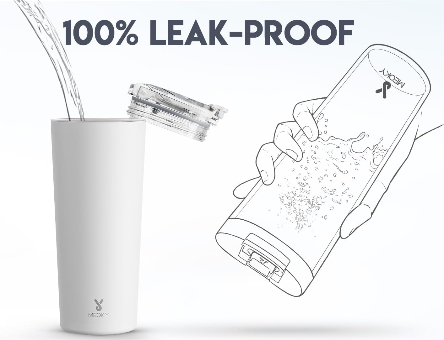 - NON-SLIP BASE. With non-slip base, Meoky travel coffee tumbler stands up and fights like a man.