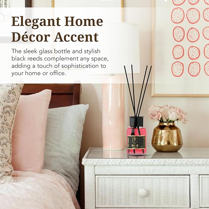 Reed Diffuser Set with Sticks for Home – Bathroom, Bedroom & Office Aromatherapy – Long Lasting Scented Oil Diffuser with Sticks – Luxury Room Fragrance Diffuser 55ml,1.7 fl oz (Rose)