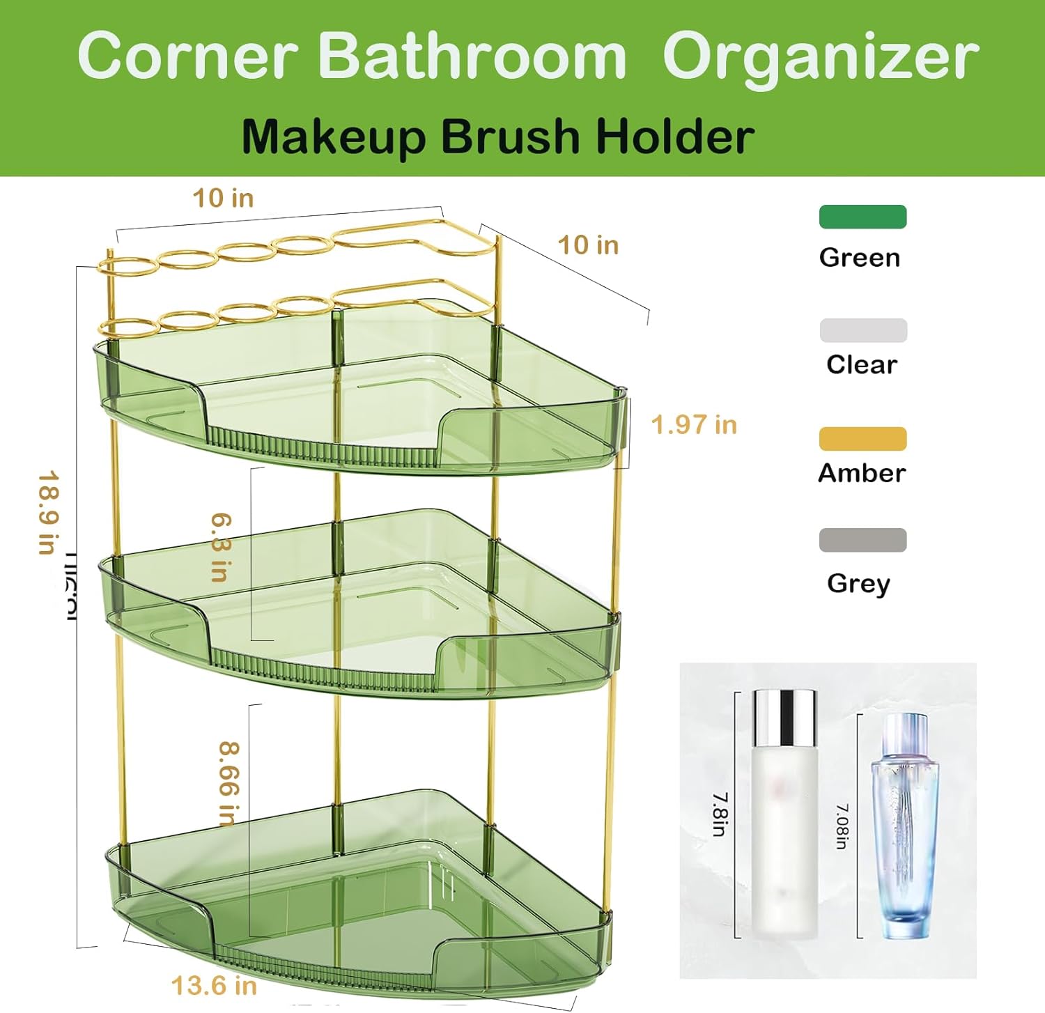 - Corner Makeup Organizer: Fully utilize your vanity countertop space with this innovative organizer, adding 100% extra storage while eliminating clutter; perfect makeup storage solution for a tidy bathroom or desk setup