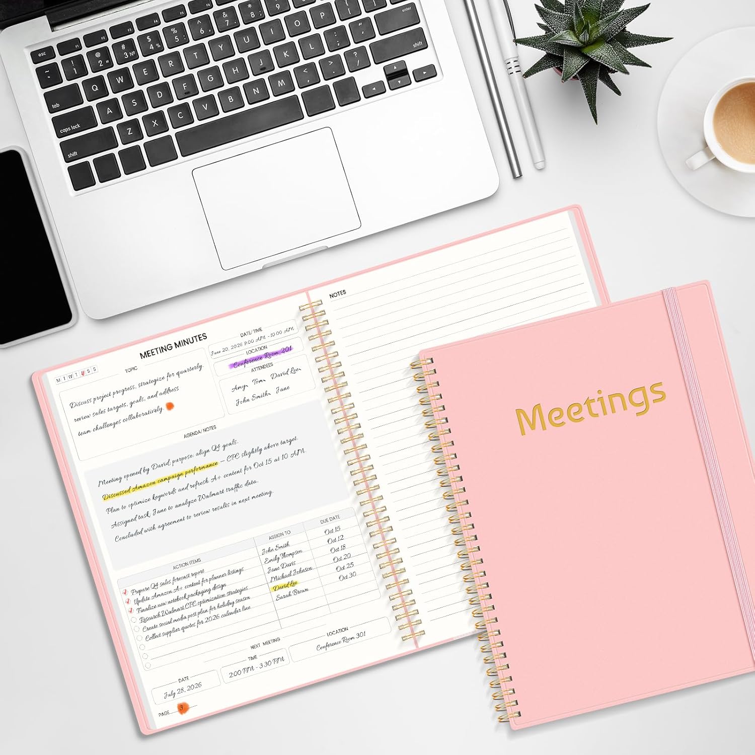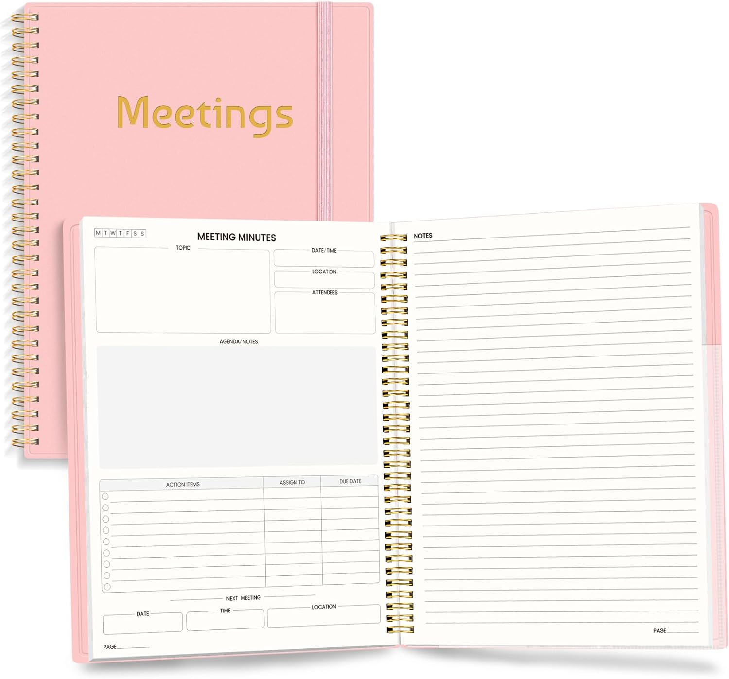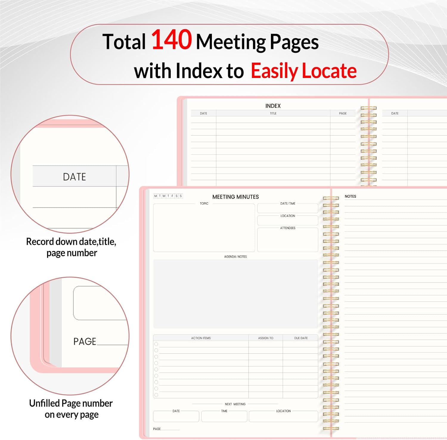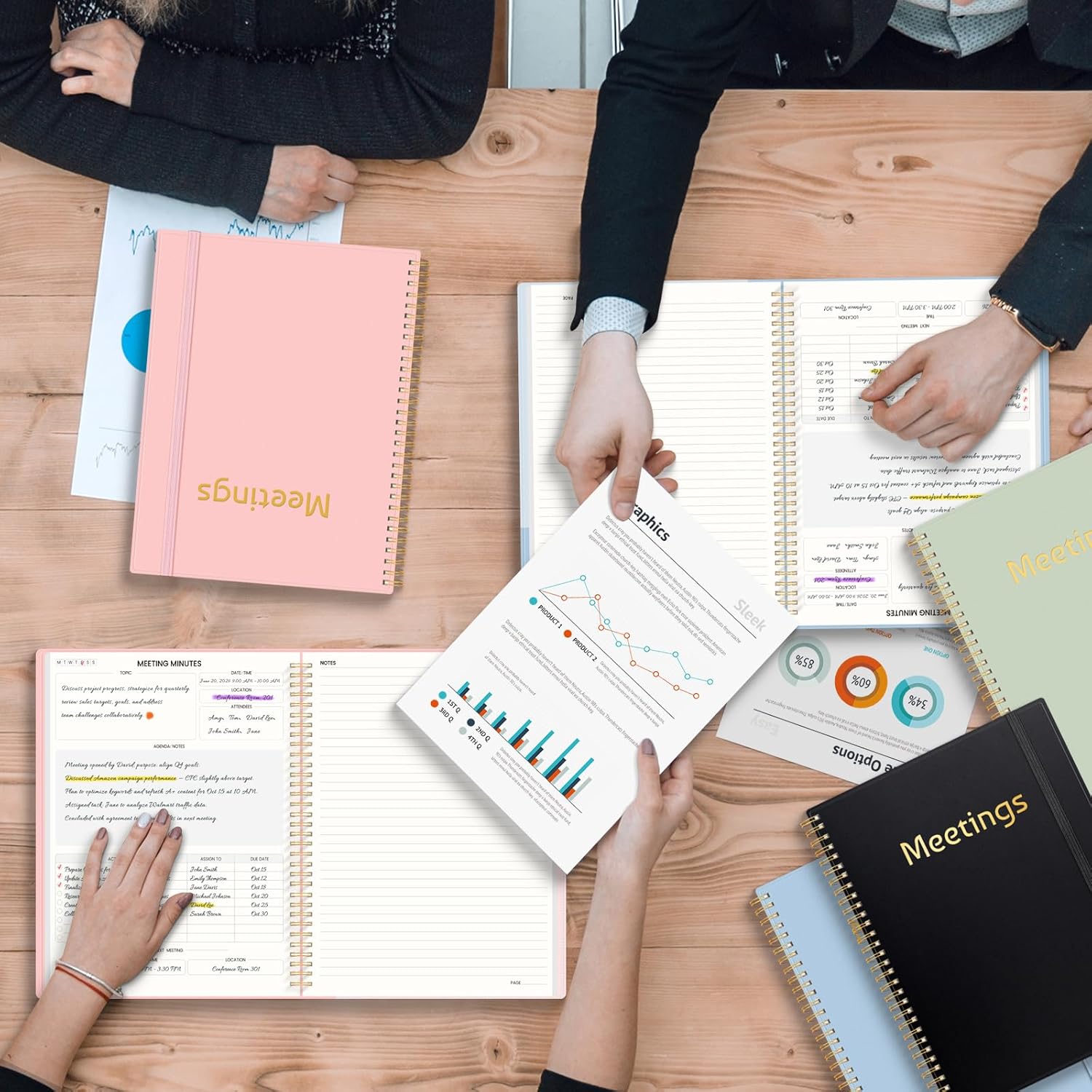 - Perfect Notebook for Work : Premium PVC waterproof cover protects your notes from spills or wear, maintaining a sharp and tidy appearance through daily use, ideal for busy work environments; Measuring 8.5" x 11" size meeting notebook provides ample room for detailed note-taking, project planning, and structured meeting agendas—perfect for office, classroom, or home workspaces