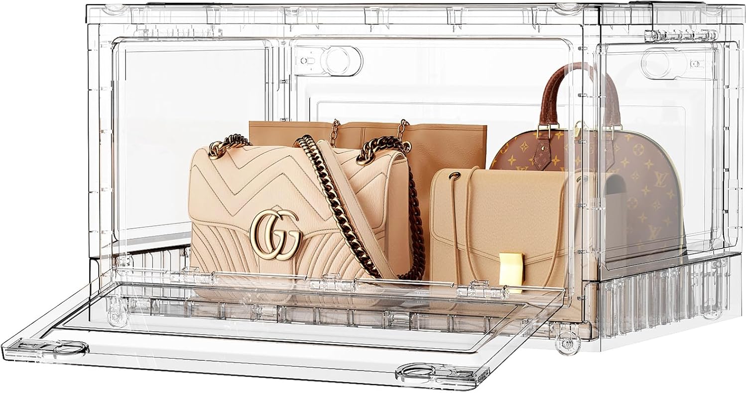 - 【Full Clear,3x Doors Storage Bins】BROVIEW clear PET stackable storage container, Visual organizer bins enable you to see exactly what you want to take out. See everything you store at a single glance. No more guessing, digging, or lifting lids to find what you need. The storage closet and organizer with Doors x3 can be opened at the top, front, and back. You can access your items through the front lockable doors or the top lids, depending on your preference.