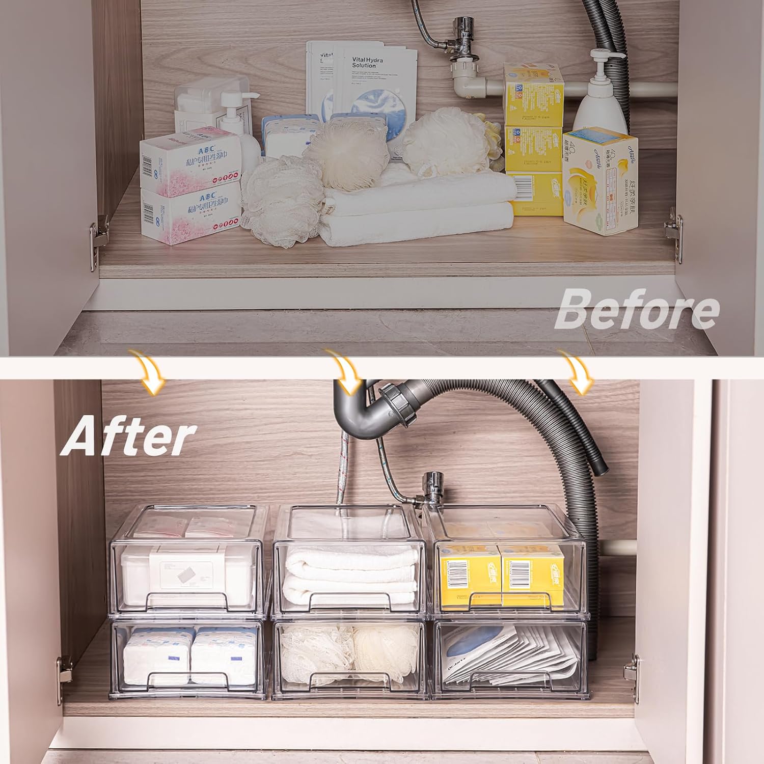 - 【Sturdy Build with Smooth-Glide Drawers】Wide built-in handles ensure drawers slide open and close effortlessly, while the anti-slip construction keeps the unit stable. Even when stacked, the smooth operation remains consistent, making it easy to access your items without struggling.