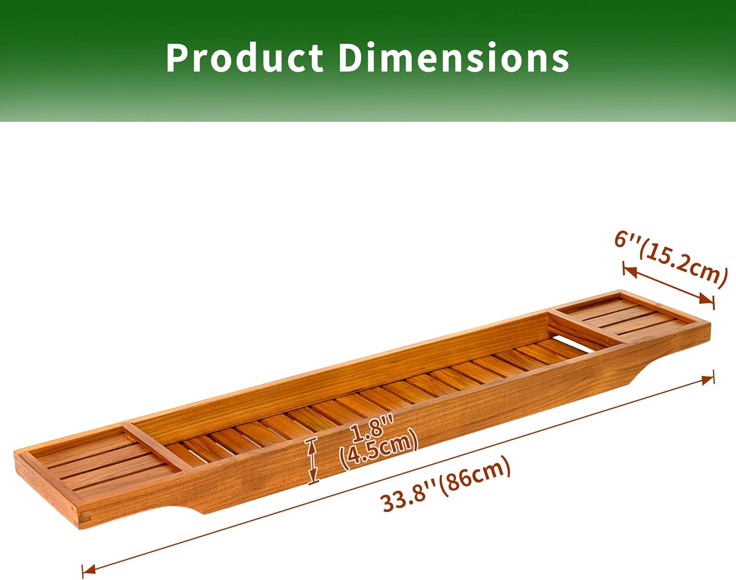 - Fit Most Bathtub: The size of our teak bathtub tray is 33.8"L x 6"W x 1.8"H
