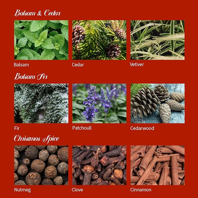 - A Trio of Scents in One Set: Discover three distinct fragrances: the woody depth of Balsam & Cedar, the crisp freshness of Balsam & Fir, and the festive warmth of Christmas Spice. Each scent embodies a different mood, allowing you to choose a favorite or rotate them to suit your moment