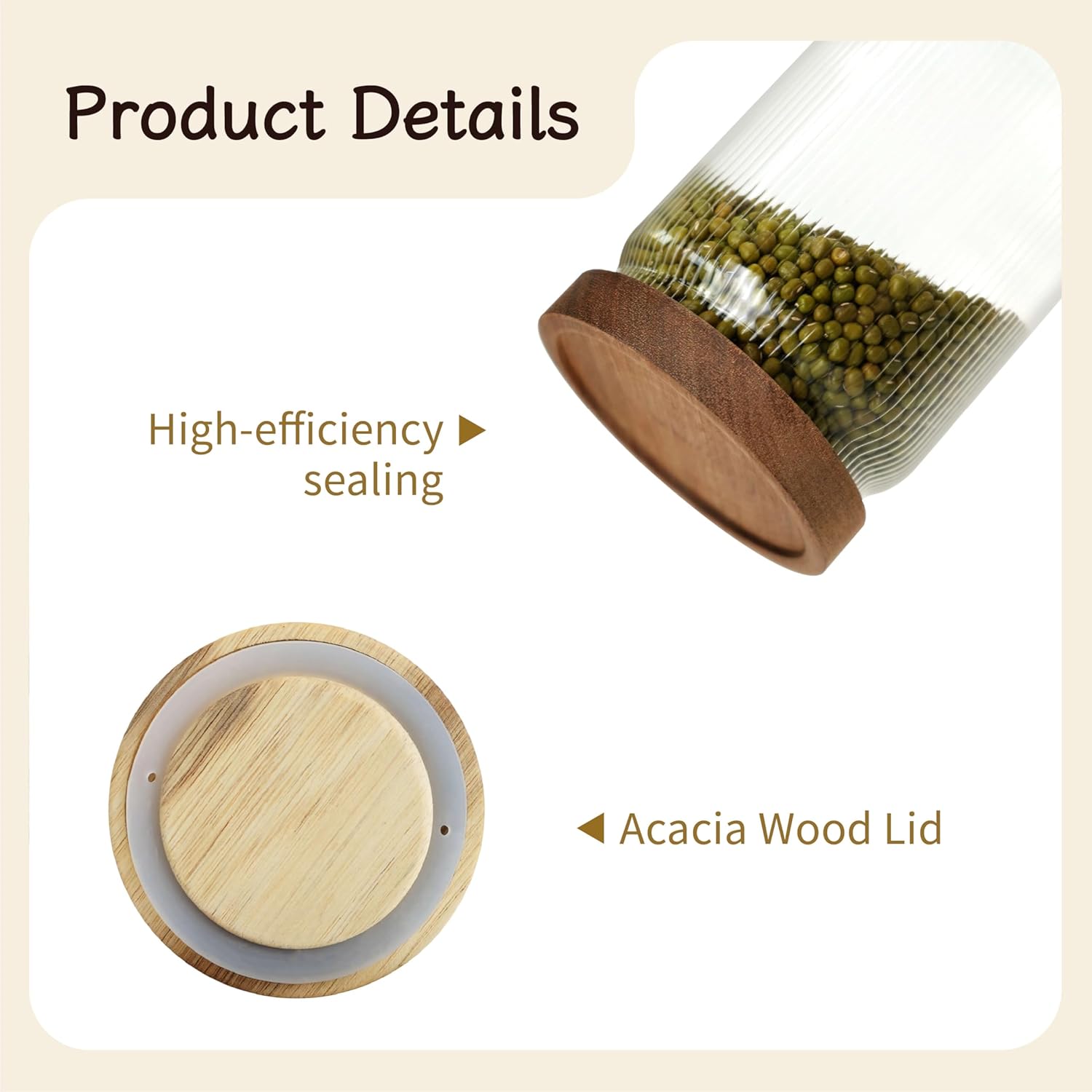 - SUPERIOR AIRTIGHT SEAL: Each jar features a premium Acacia wooden lid with a food-grade silicone ring, ensuring an effective airtight seal to keep contents fresh longer and protect against moisture.