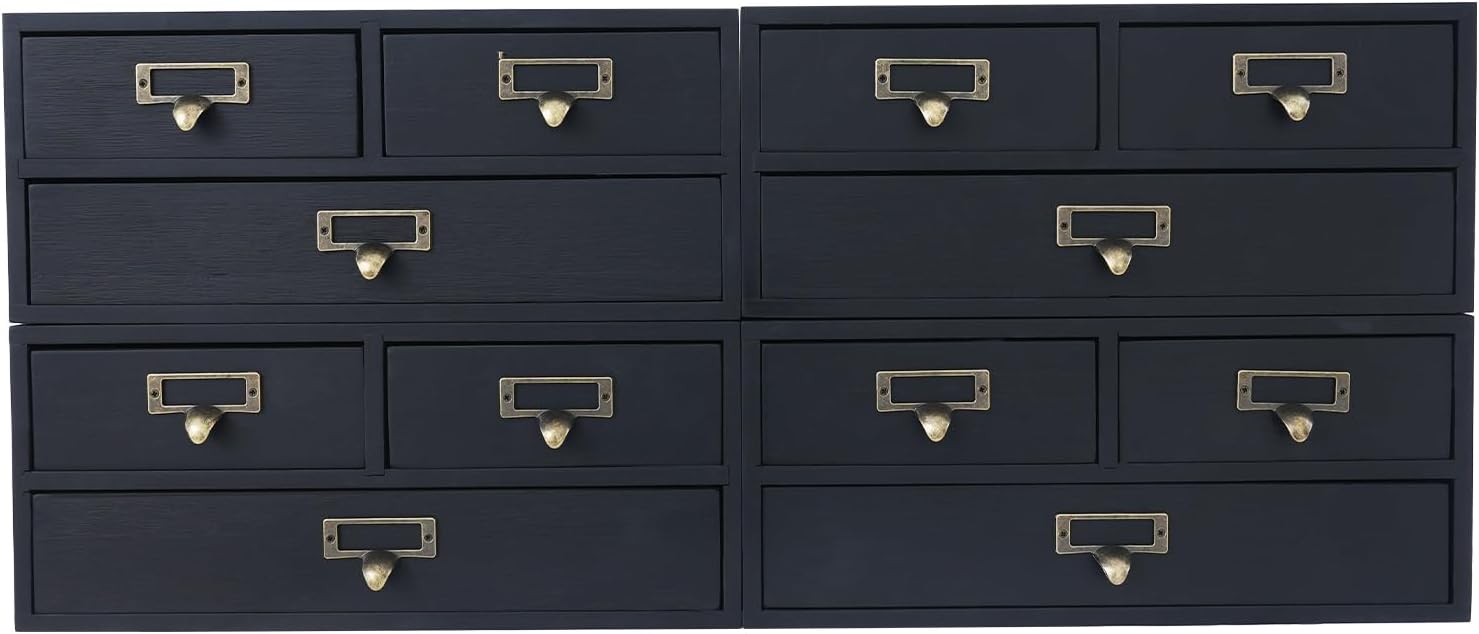 4-Piece Desktop Organizer Set with 3 Drawers, Wood & Metal Drawer Storage, Wooden Desktop Organizer for Store Cosmetics, Jewelry, Letters, Papers, Tea Bags, Sugar Packets (Black)