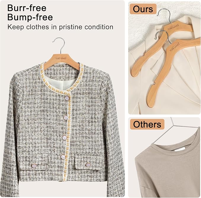TOPIA HANGER Wooden Coat Hangers 24 Pack, Premium Wood Top Suit Hangers with No Shoulder Bump, 360° Swivel Hook and Cut Notches Clothes Hangers for Sweater, Coat, Shirts, Jackets, Dress, Natural CT85N