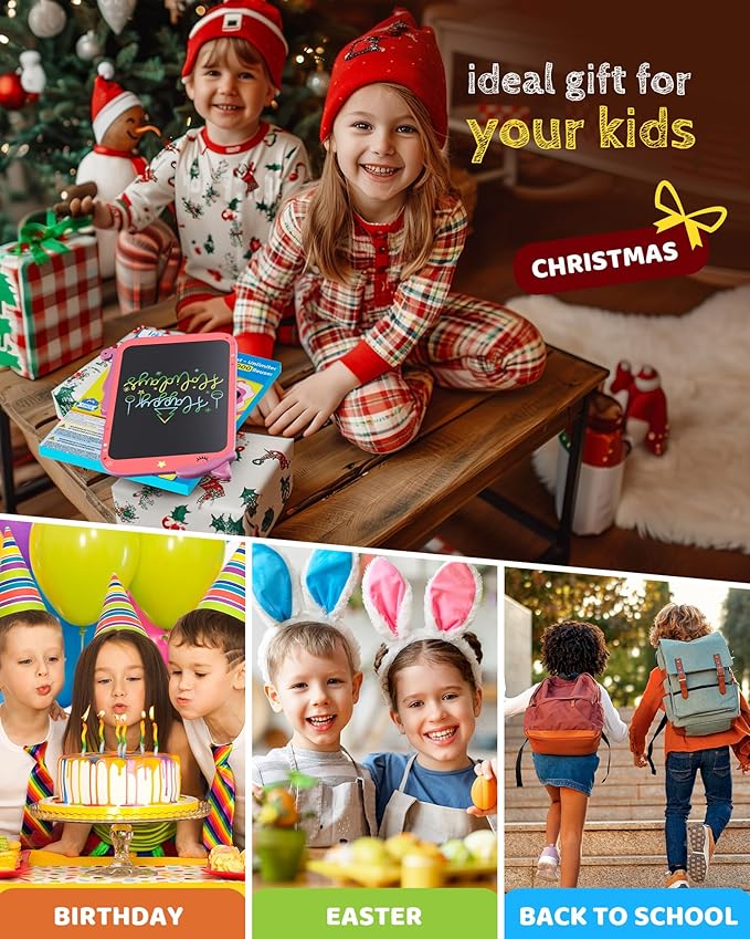 TEKFUN Toddler Boy Toys, LCD Writing Tablet for Kids, Doodle Board Dinosaur Toys, Travel Essentials Toys for 3 4 5Year Old Boys Girls, Easter Birthday Christmas Gifts (10inch Rosepink)