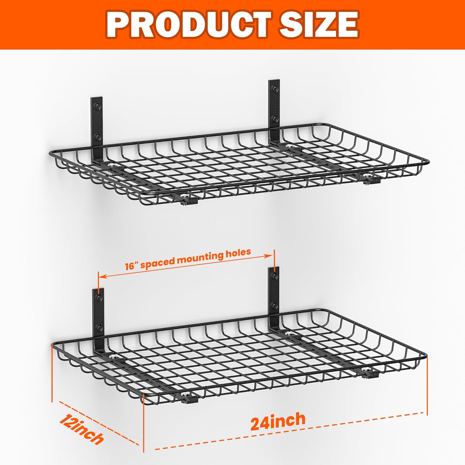 - Versatile Application: Each 24"x12" wall-mounted shelf can be installed vertically, horizontally, used alone, or in combination to fit different layouts. Ideal for garages, kitchens, offices, basements, and shops, meeting a variety of storage needs