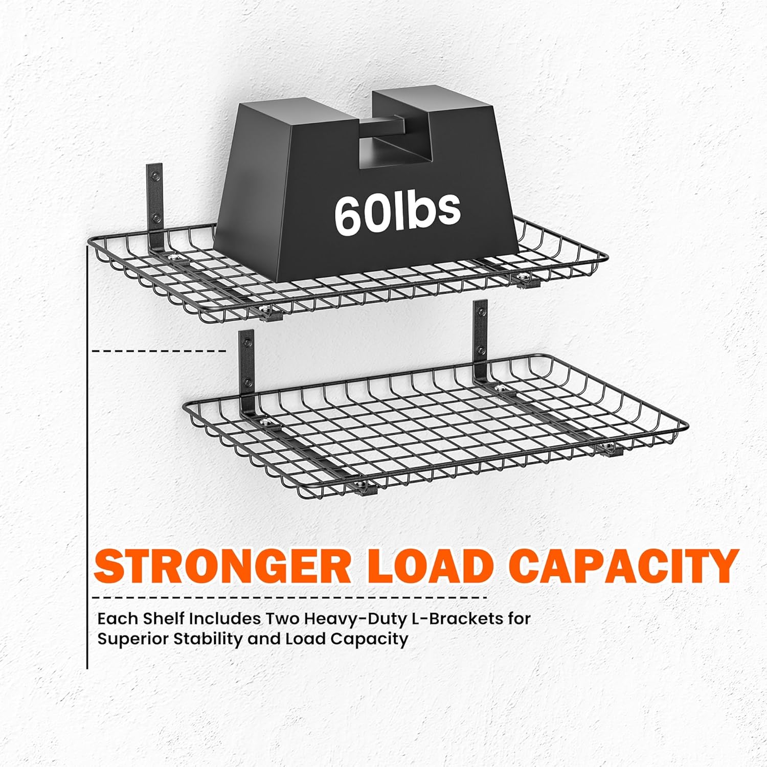 - High-Quality Steel Construction: Built from premium heavy-duty steel with a rust-resistant powder-coated finish, each shelf supports up to 60 lbs, offering exceptional strength, durability, and secure storage for items