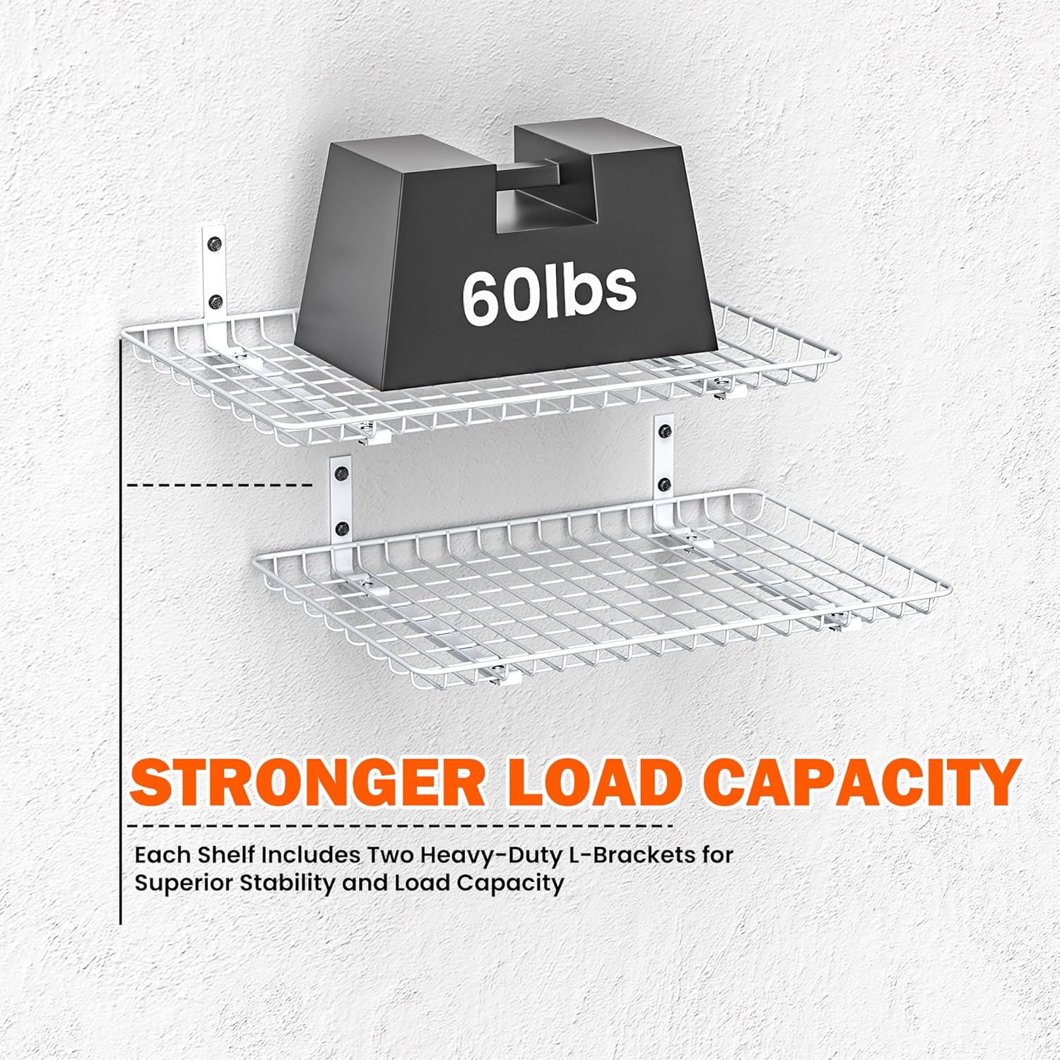 - High-Quality Steel Construction: Built from premium heavy-duty steel with a rust-resistant powder-coated finish, each shelf supports up to 60 lbs, offering exceptional strength, durability, and secure storage for items