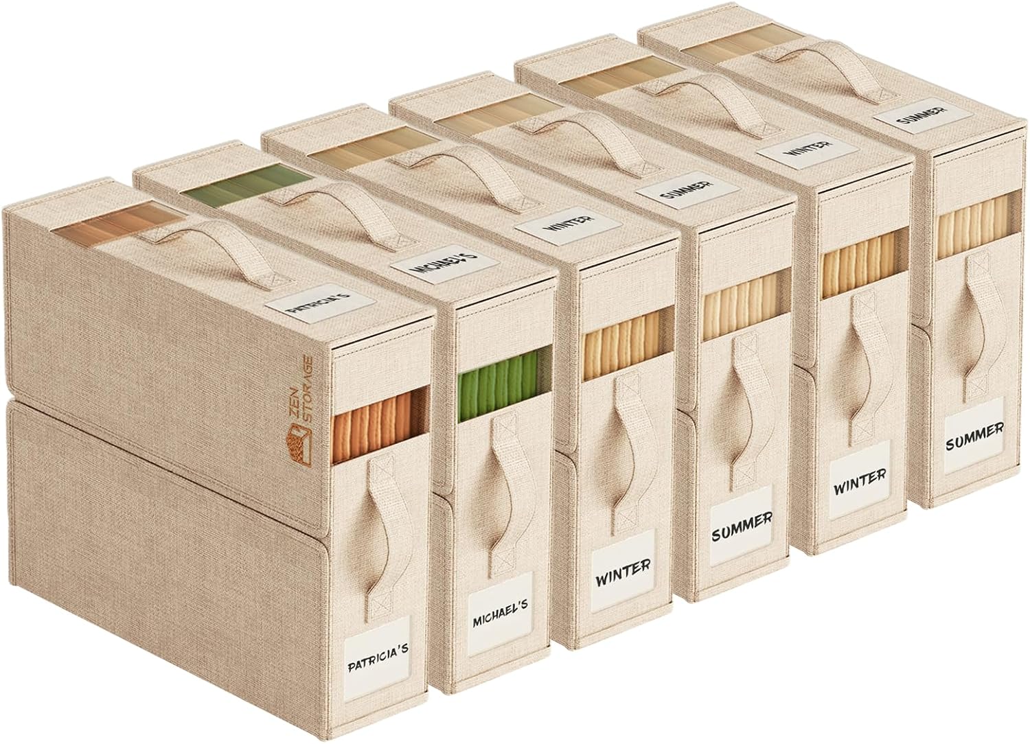 6Pack Sheet Organizers and Storage - King/Queen Size Sheet Storage Organizer with Window, Foldable & Dustproof Sheet Organizer for Linen Closet for Summer Blankets & Sheet Sets,Beige