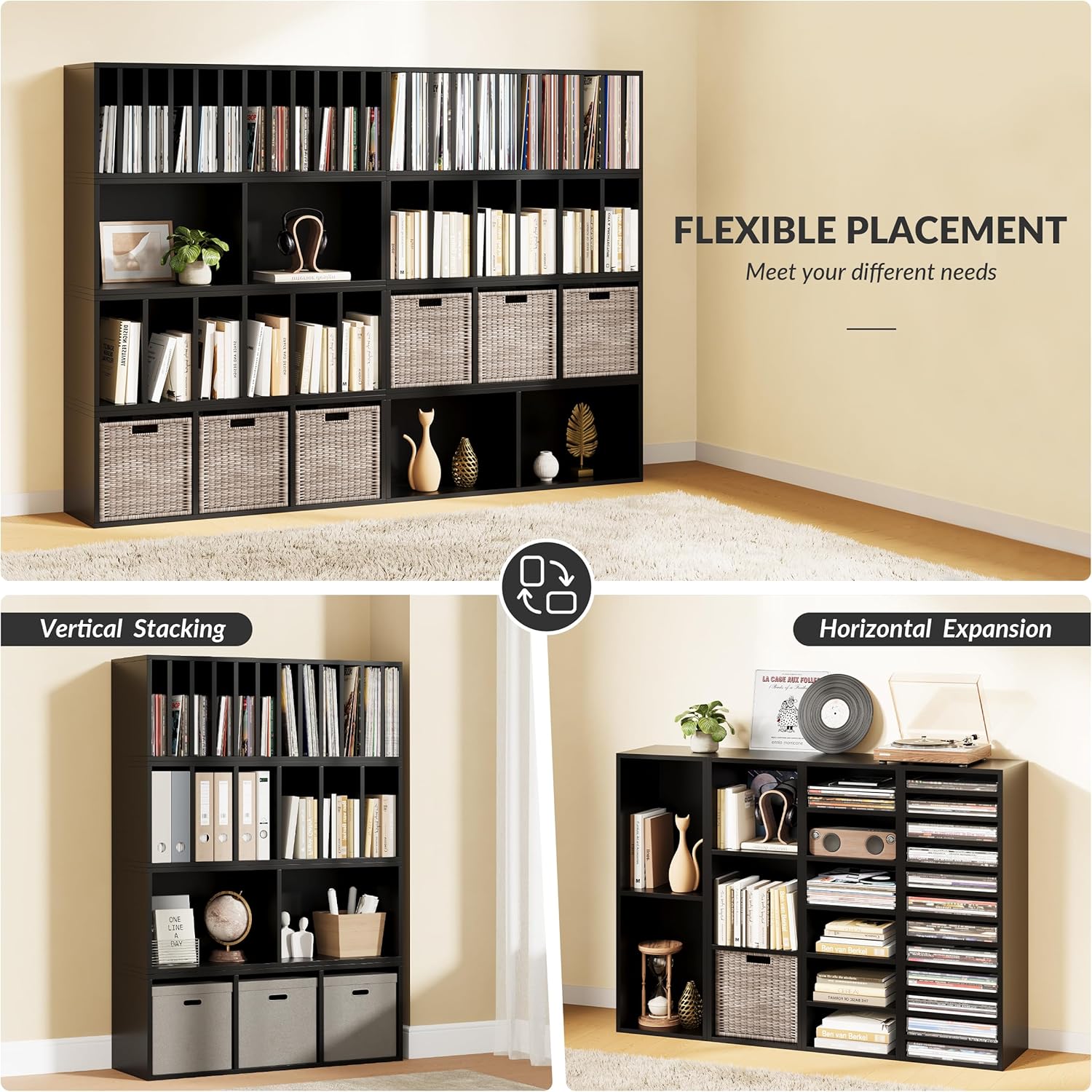 - GENERAL & SPECIALISED PURPOSES - In addition to daily use for displaying books, toys, photo albums, curios, ornaments, etc., there are also the following specialized uses: 3-cube ideally suited for 11" fabric storage bin boxes, 6-cube and 12-cube ideally suited for CDs, and 7" - 10" vinyl records.