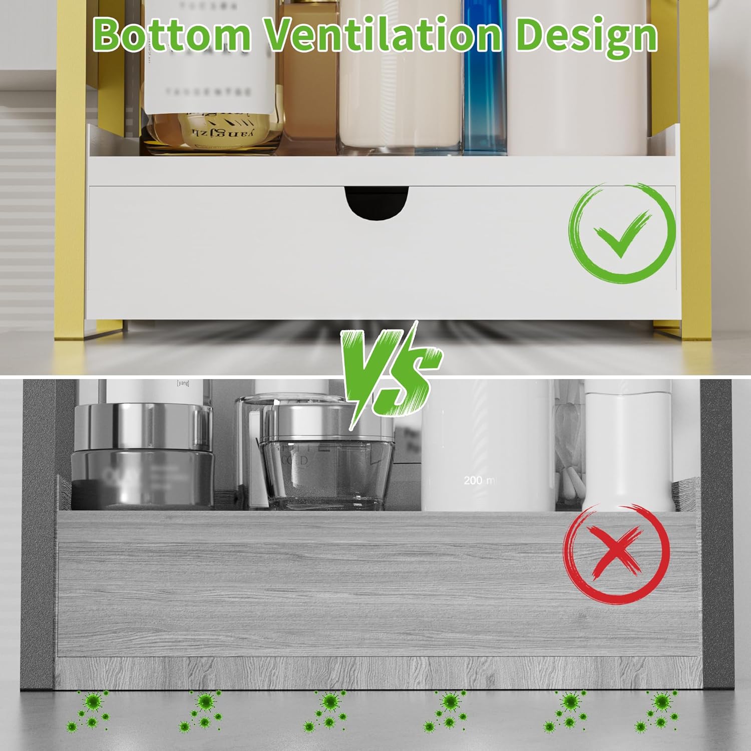 - Sturdy and Durable: This bathroom vanity organizers is made of high-quality wood and solid metal, and the bottom ventilation design can resist the moisture of the bathroom environment. The simple design fits your home style.