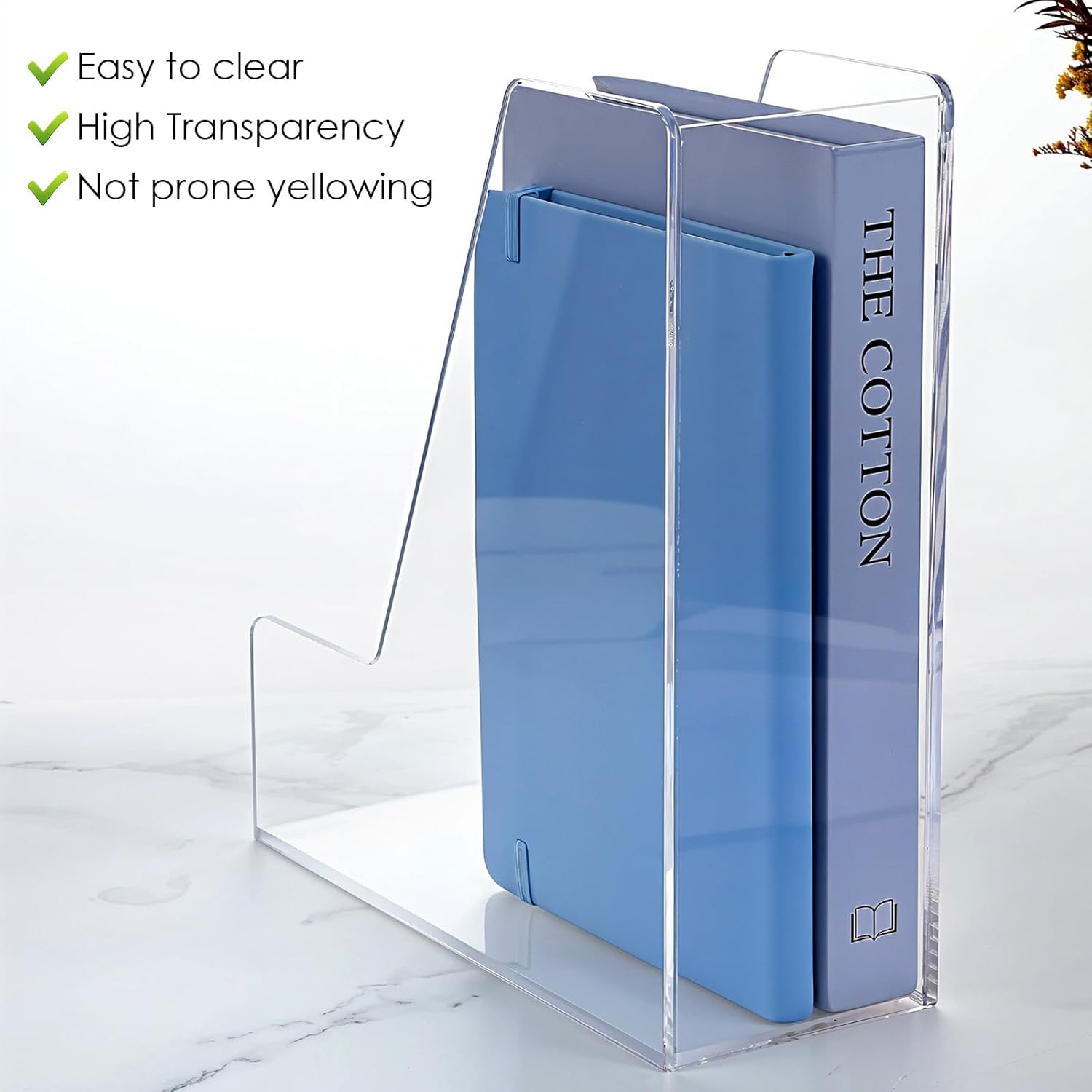 - 【Desktop Organization】The 2-pack acrylic magazine file holder provides vertical storage space, for organizing A4/Letter-sized paper, folders, binders, and notebooks. Its modular design allows for flexible combination to suit your workspace needs. The transparent material ensures quick visibility of stored items, enhancing productivity while maintaining a desk.