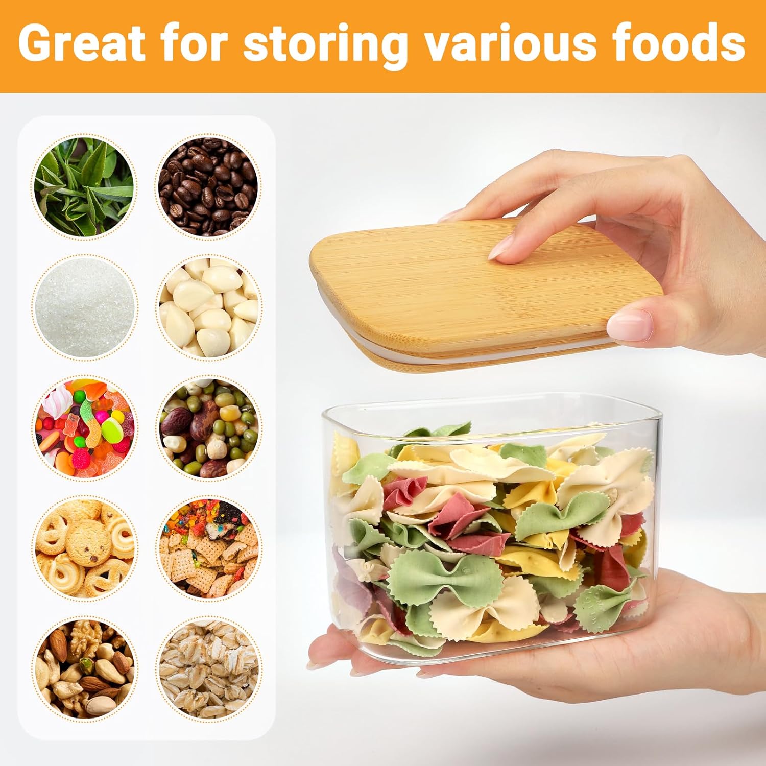 - Versatile Jars for Kitchen Storage - Perfect for storing a variety of items such as seasoning, herbs, coffee beans, tea leaves, brown sugar, snacks, flour, cookie, candy, oats, cereal, rice, dried fruits and more; great for pantry storage, countertop organization, or meal prep. They also serve as great gift for housewarmings, weddings, or other special occasions.
