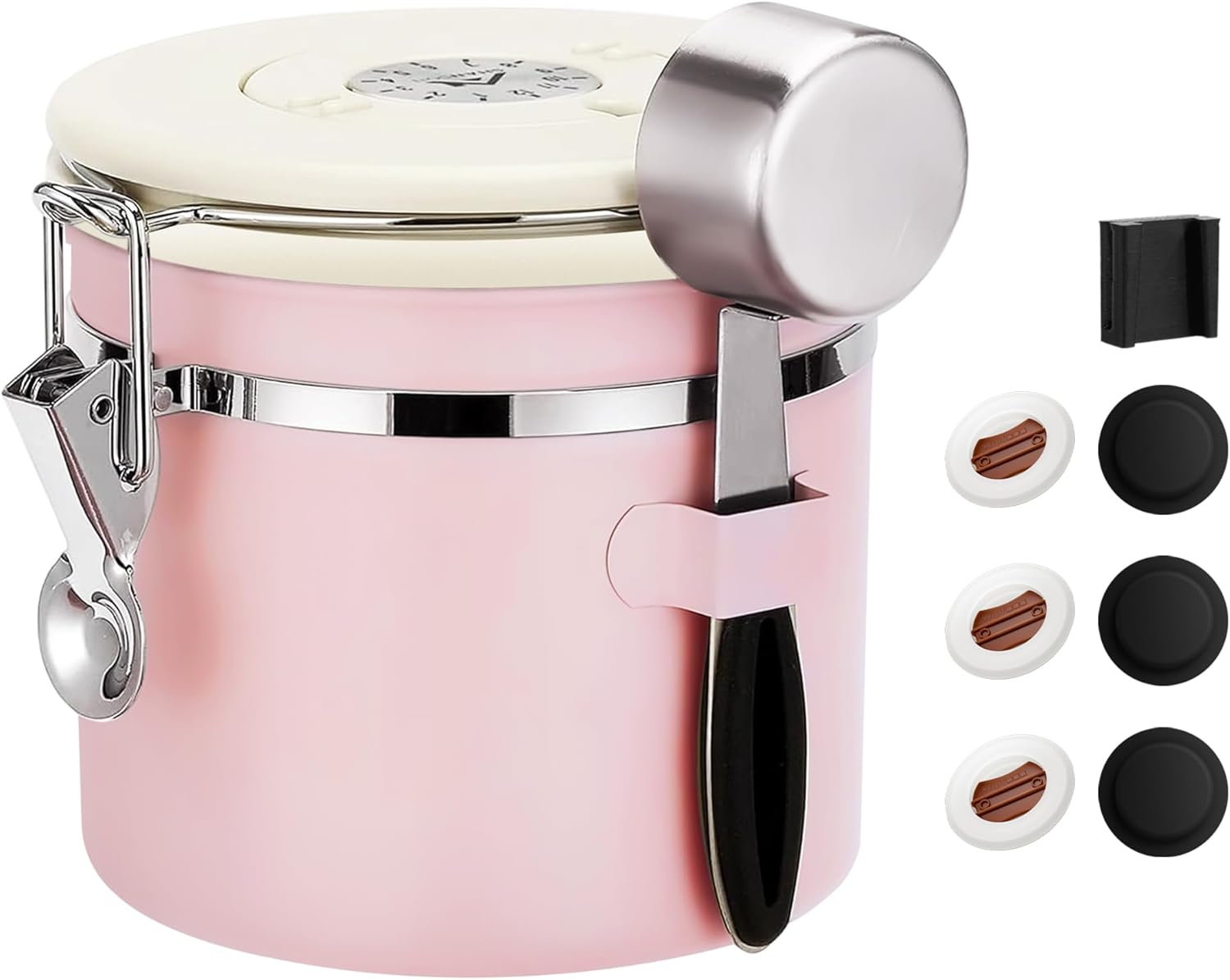 - 【BUILT-IN DATE TRACKER】A simple yet incredibly useful feature! The date tracker lets you monitor when the canister was last filled, helping prevent your coffee from going stale unnoticed. A stainless steel scoop is conveniently attached to the side, so you’re never left searching for a measuring spoon. Features a superior airtight seal for maximum freshness.