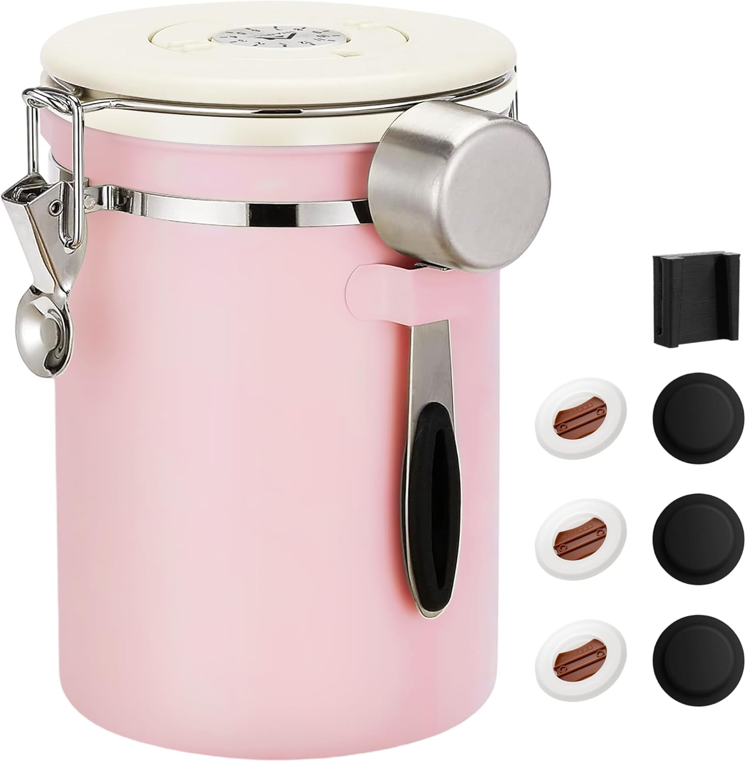 - 【BUILT-IN DATE TRACKER】A simple yet incredibly useful feature! The date tracker lets you monitor when the canister was last filled, helping prevent your coffee from going stale unnoticed. A stainless steel scoop is conveniently attached to the side, so you’re never left searching for a measuring spoon. Features a superior airtight seal for maximum freshness.