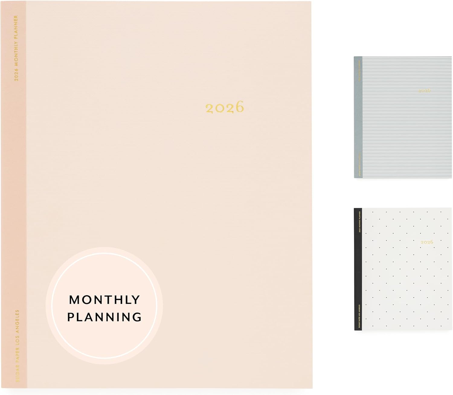 Sugar Paper 2026 Monthly Planner, January to December, 8" x 10", Calendar for Women, Flexible Matte Paper Cover, Fabric Tape Stitch Binding, 12 Month, Two Tone Pink