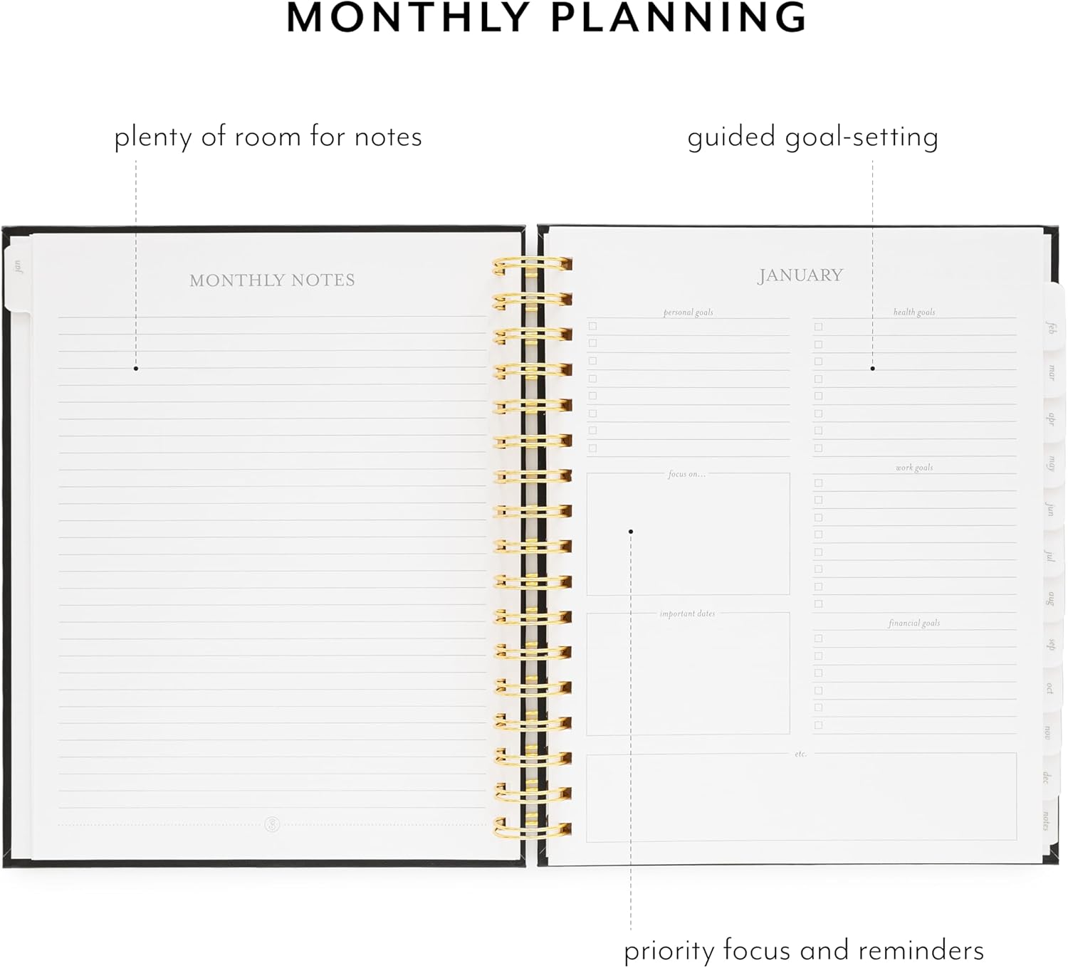 - SPACIOUS AND ORGANIZED LAYOUTS – The 7.5" x 9.25" size provides ample writing space while remaining compact enough for on-the-go use. The weekly spreads allow detailed scheduling, while the monthly overviews are perfect for tracking big-picture goals and key dates, keeping you on top of your priorities.
