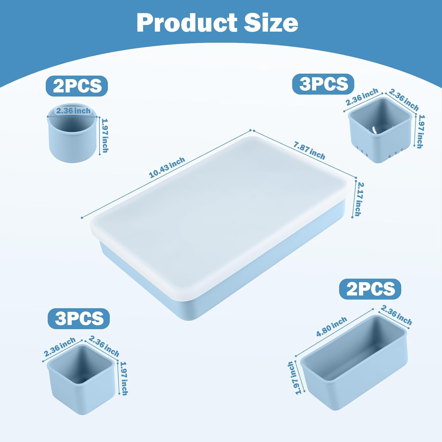 - 【10 Pcs Set and Different Sizes】This 10 pcs silicone makeup organizer set includes multiple sizes to fit various drawer spaces.silicone makeup organizer set size:(8Pcs)2.36"x2.36"x1.97", (2Pcs)4.80"x2.36"x1.97". These drawer or ganizers adapt to your unique storage needs, eliminating clutter in any drawer