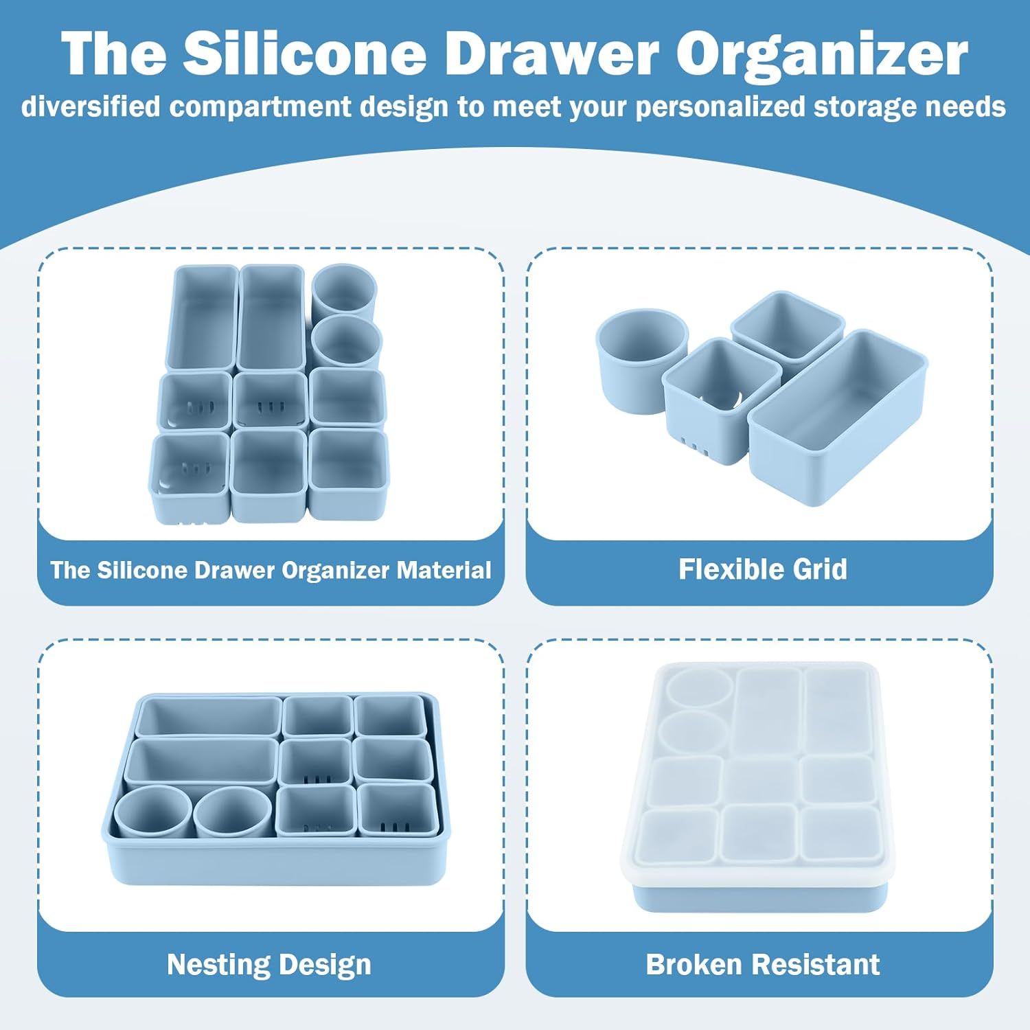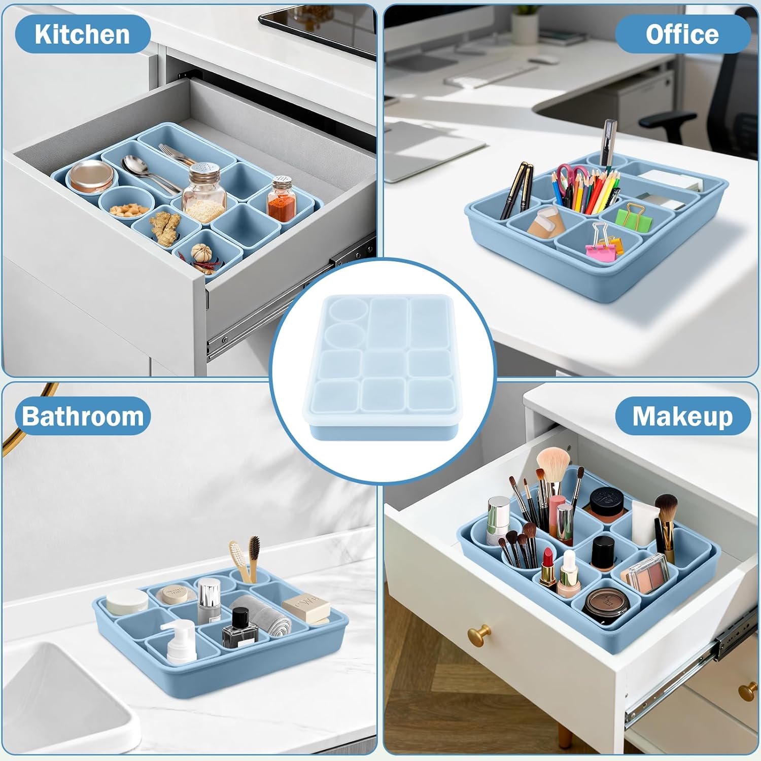 - 【Silicone Drawer Organizer Material】Crafted from silicone, these silicone drawer organizer are flexible yet sturdy, designed to withstand daily use without cracking or deforming. BPA-free, they’re safe for storing personal items like makeup, jewelry, or kitchen utensils, ensuring, making them a reliable choice for long-term organization