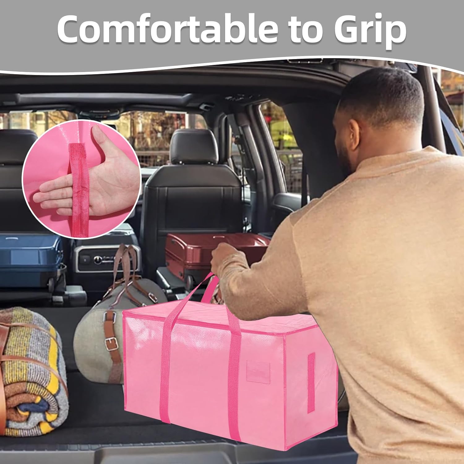 8 Pack-Extra Large Heavy Duty Moving Bags - Waterproof Storage Totes with Handles & Zippers, Foldable for College Dorm, Storage (Pink)