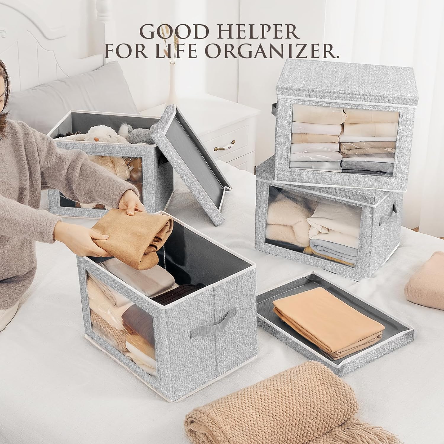 Stackable Storage Bins with Lids - Medium Storage Box with Lids, Foldable Closet Boxes for Organizing, Wardrobe Clothes Organizer with Window, Cubes Bins for Living Room, 5 Pack, Blended