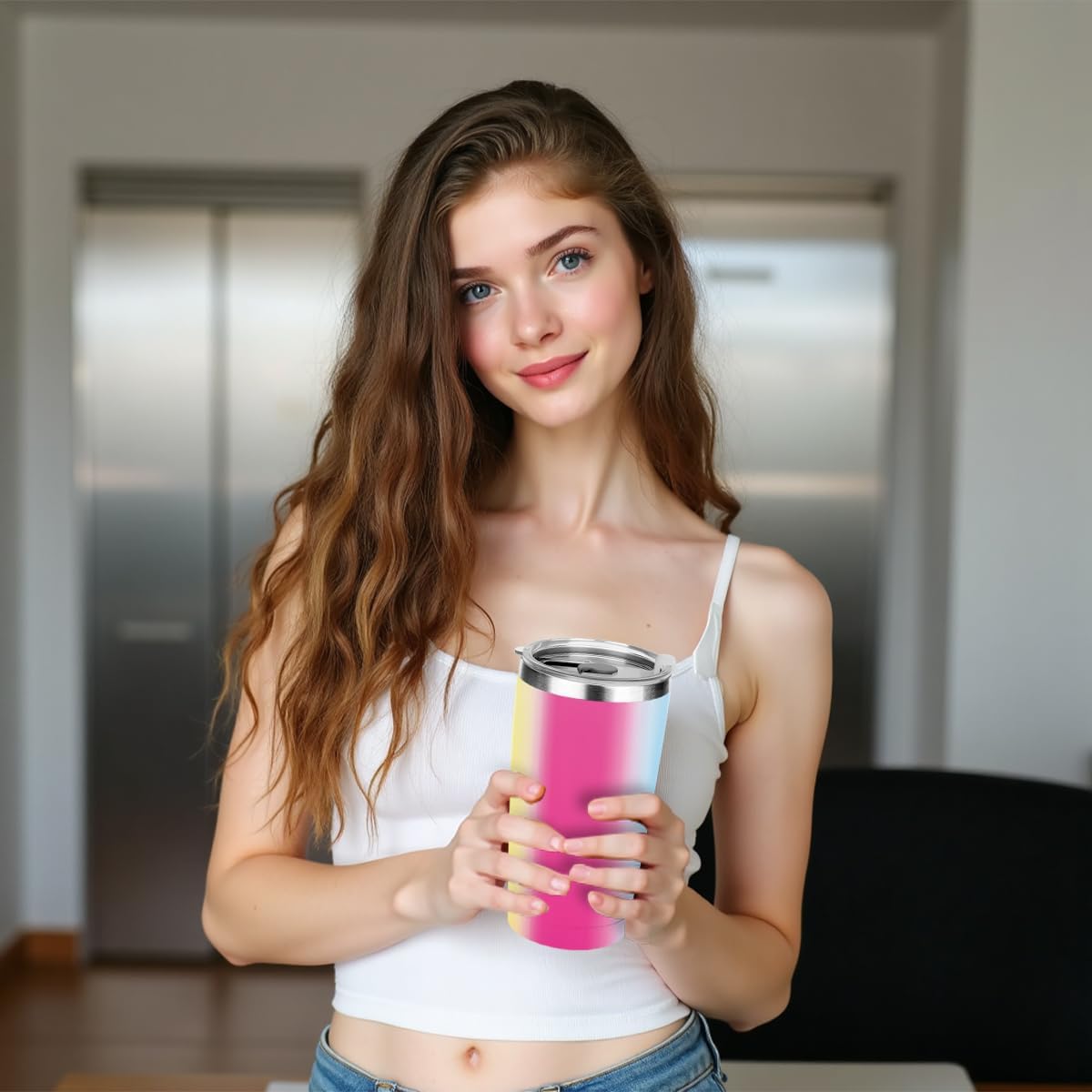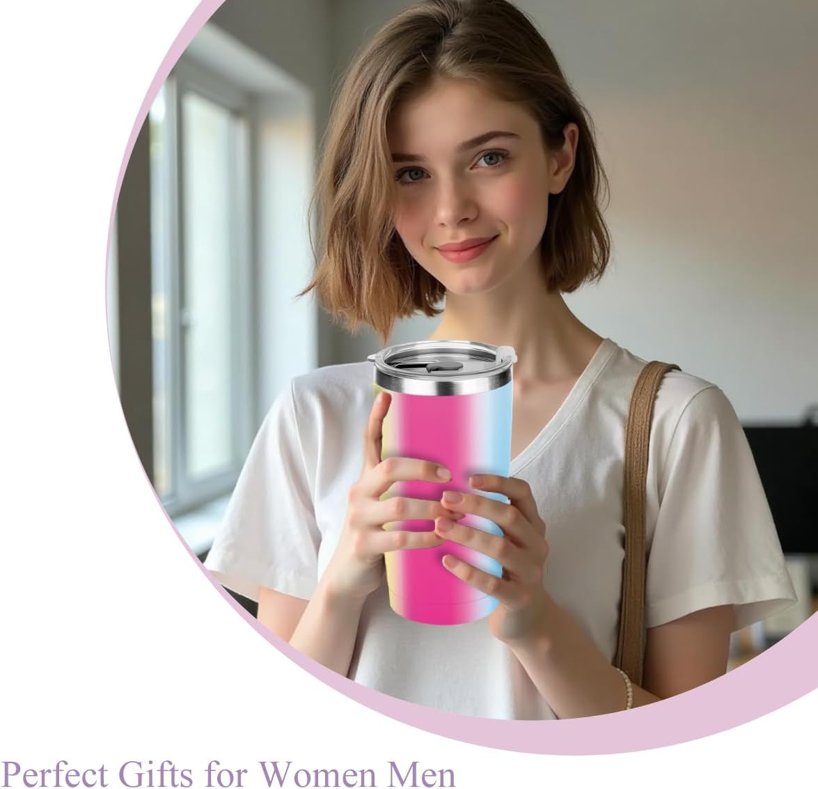 20 oz Insulated Tumbler, Tumbler with Lid Straw, Insulated Travel Coffee Mug Stainless Steel Cup for Cold Hot Drink Gift for Women Friend Colleague Christmas Birthday Friendship (Colorful Abstract)