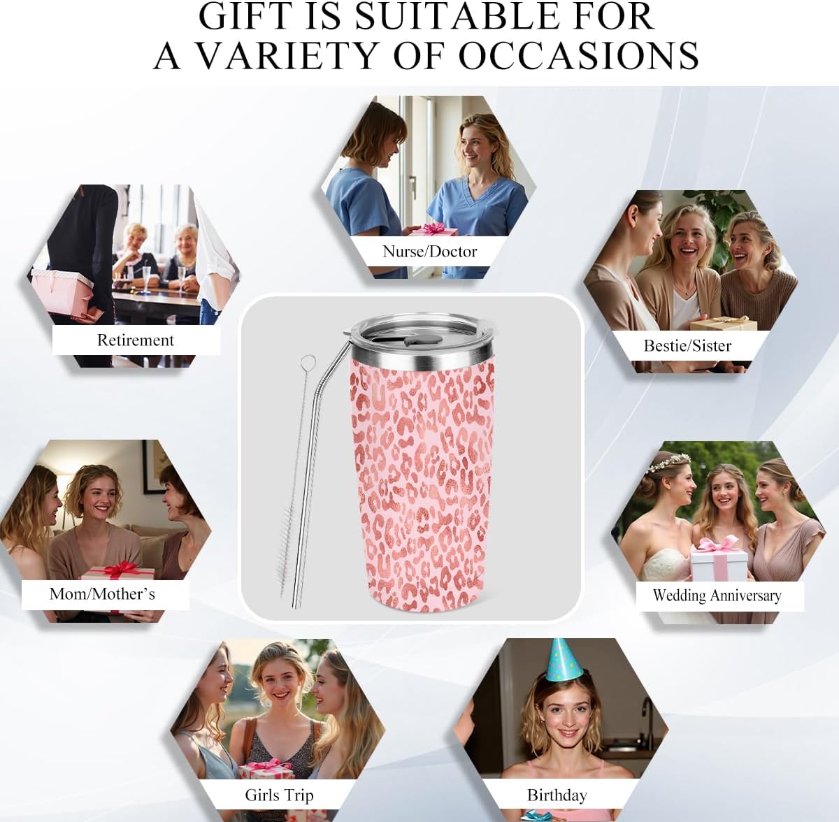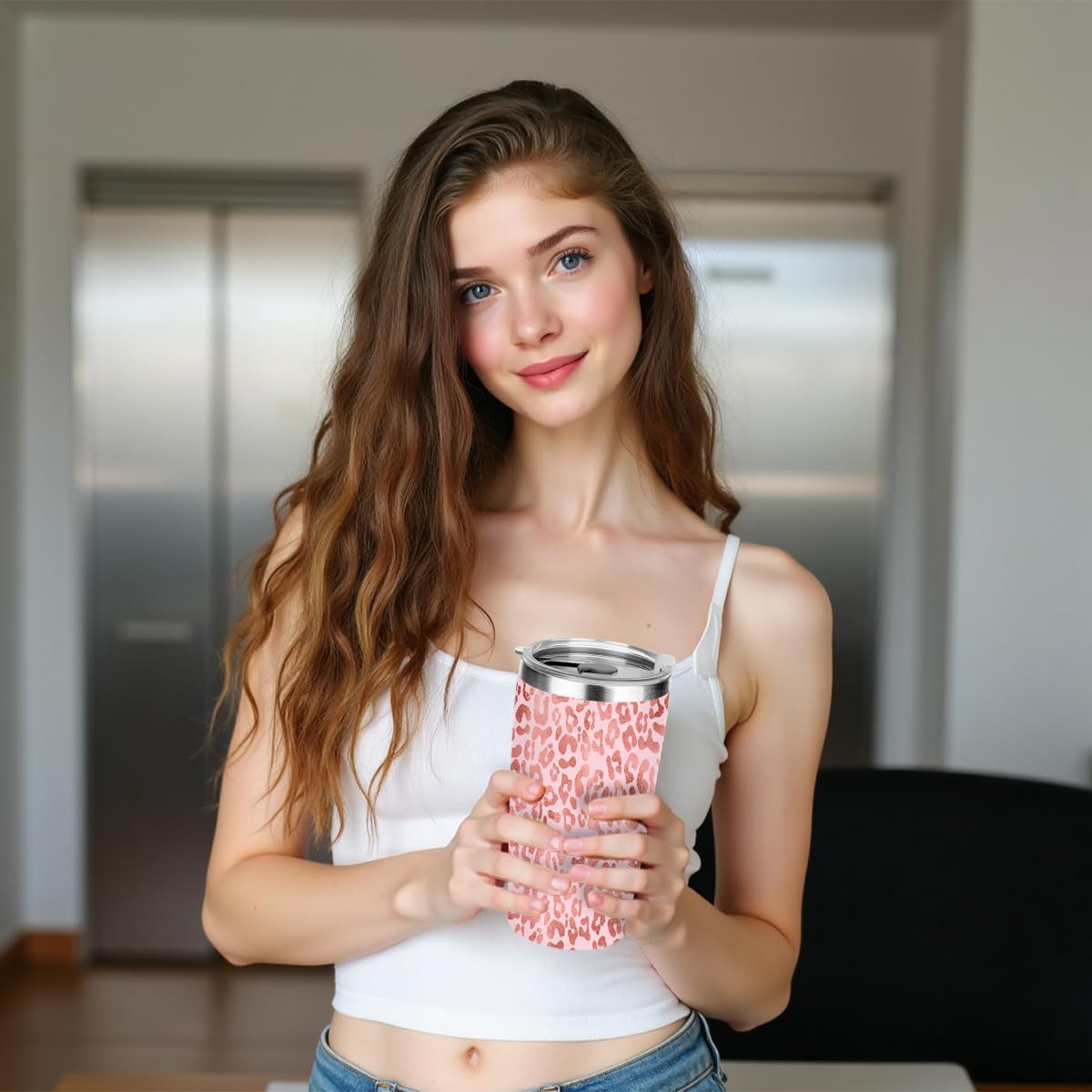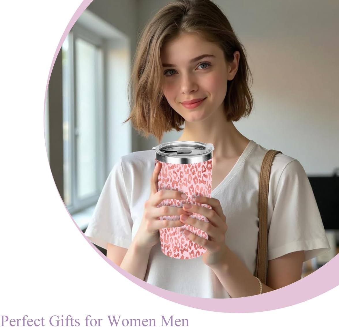 20 oz Insulated Tumbler,Tumbler with Lid Straw, Leopard Decor Insulated Travel Coffee Mug Stainless Steel Cup for Cold Hot Drink Gift for Women Friend Christmas Birthday Friendship (Pink Leopard))