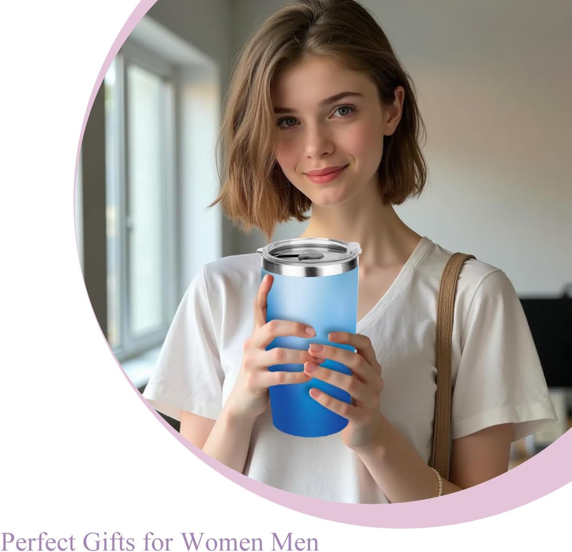 20 oz Insulated Tumbler, Tumbler with Lid Straw, Insulated Travel Coffee Mug Stainless Steel Cup for Cold Hot Drink Gift for Women Friend Girls Sister Colleague Christmas Birthday Friendship (Sky)