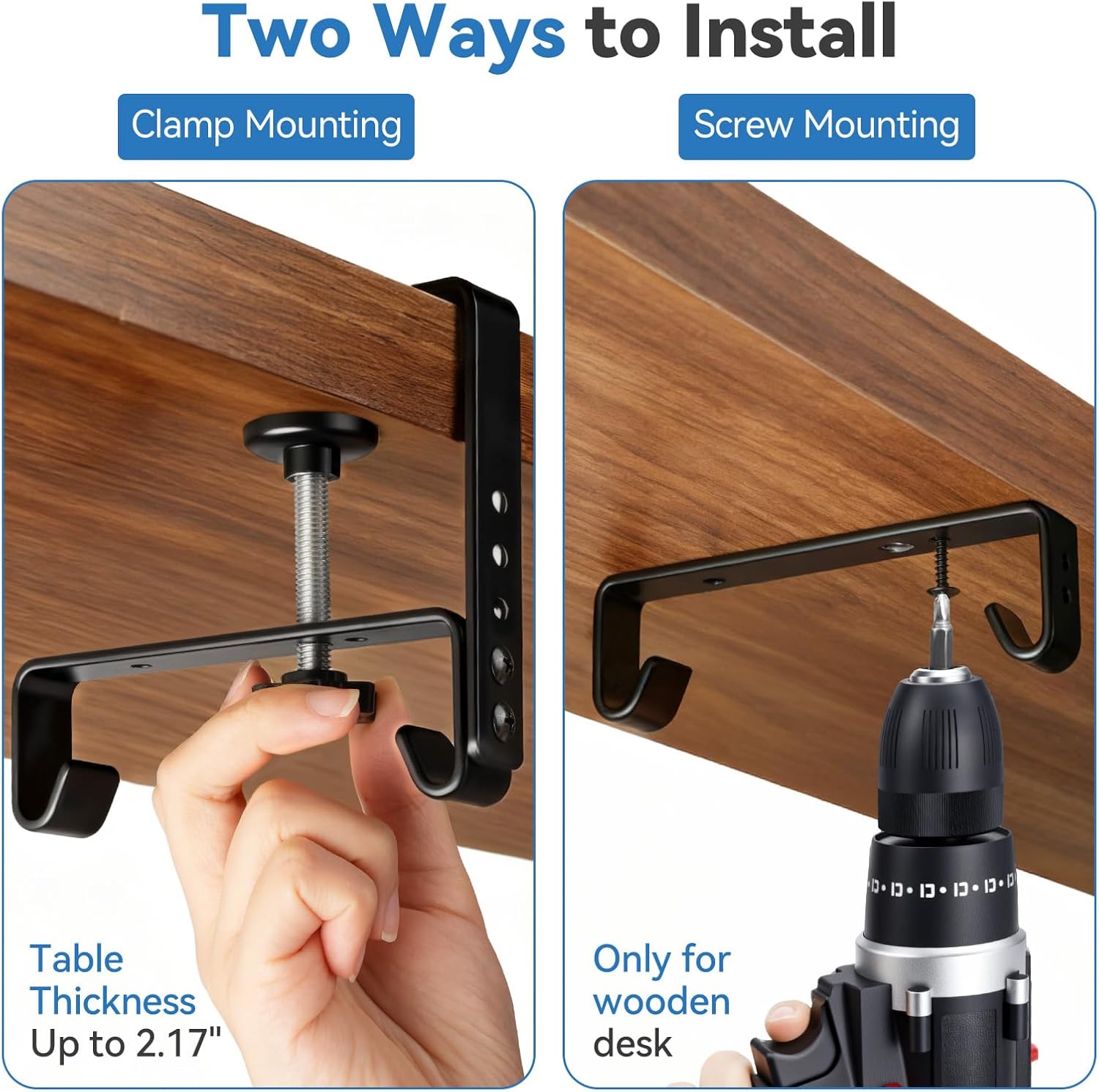 - [Clamp/Screw Mount] Choose the installation that works for you: our mount features a tool-free clamp for instant, damage-free setup and removal, or an screw-on option that stays completely hidden—keeping your desktop and back area clean and clutter-free for a truly seamless workspace.