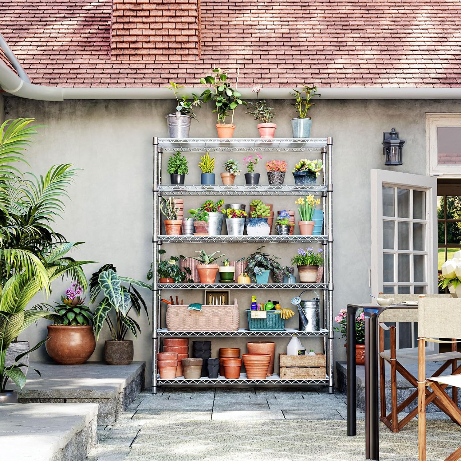 - 【Multi-Functional Storage – Perfect for Any Space】 Designed for versatility, this metal shelving unit is ideal for garages, storage rooms, balconies, gardens, and kitchens. Whether you’re organizing tools, gardening supplies, household items, or appliances, IZEUK shelves help keep everything tidy and make the most of your space.