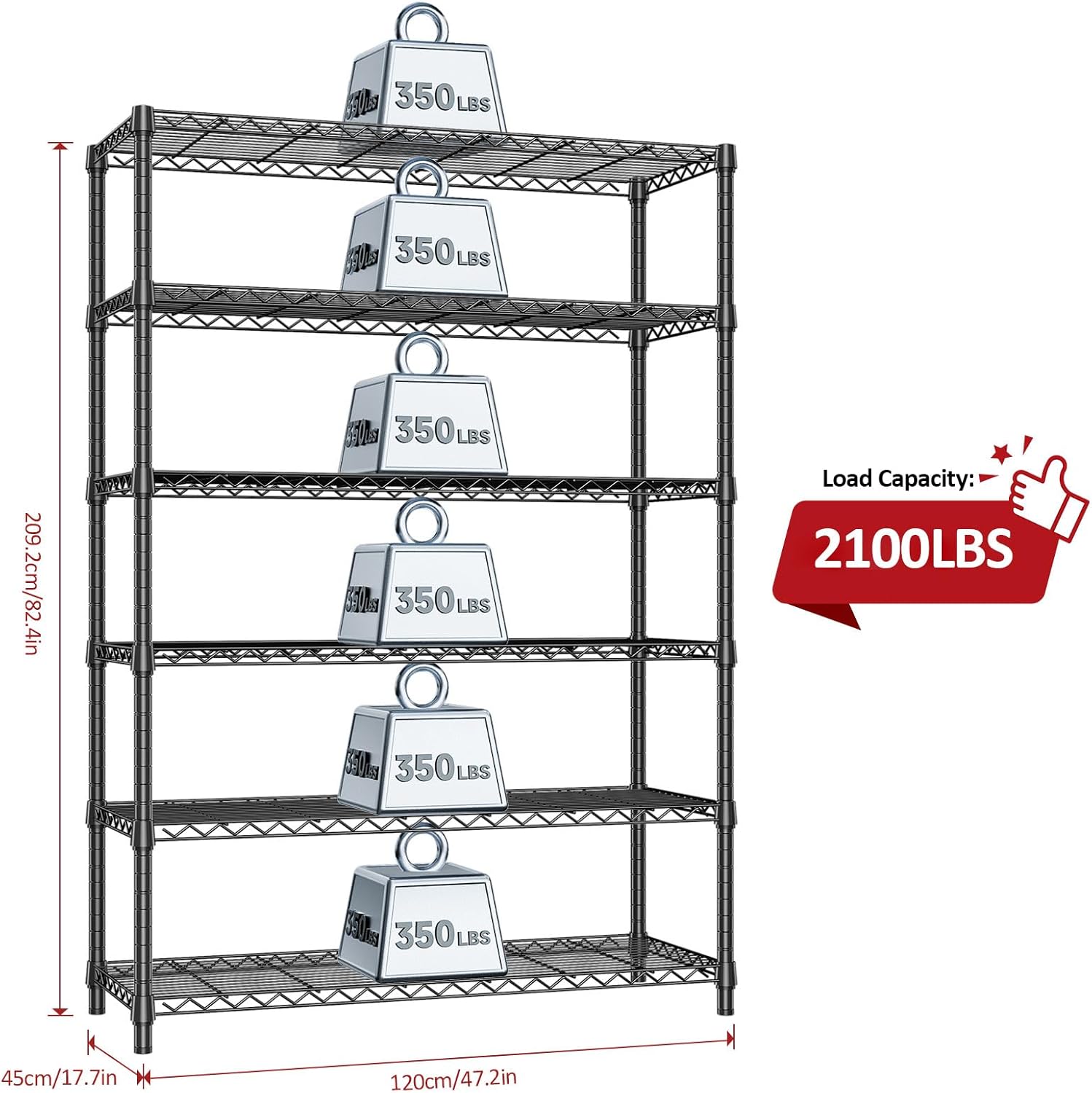 - Size : 6 Tier, 17.7" D x 47.2" W x 82.7" H