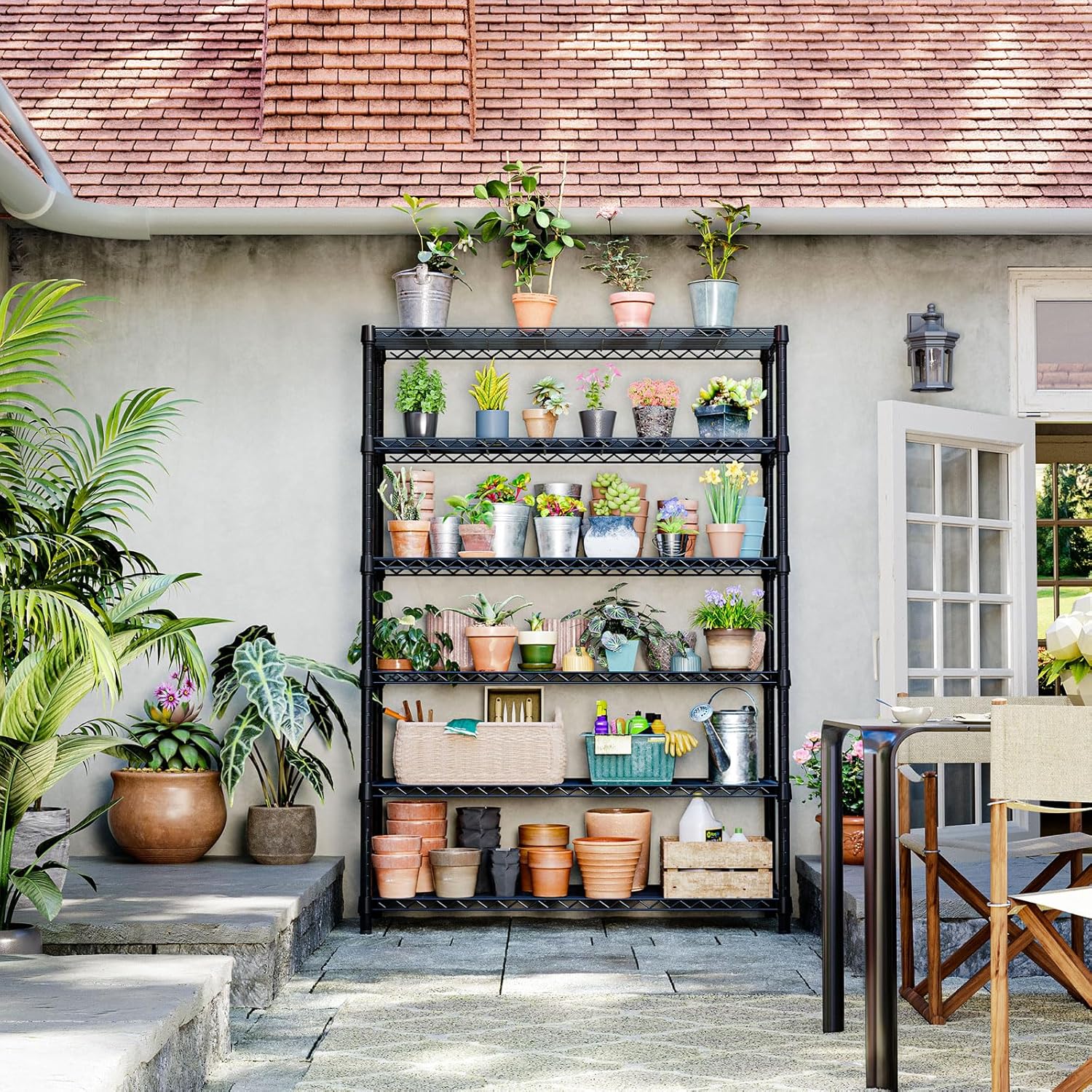 - 【Multi-Functional Storage – Perfect for Any Space】 Designed for versatility, this metal shelving unit is ideal for garages, storage rooms, balconies, gardens, and kitchens. Whether you’re organizing tools, gardening supplies, household items, or appliances, IZEUK shelves help keep everything tidy and make the most of your space.