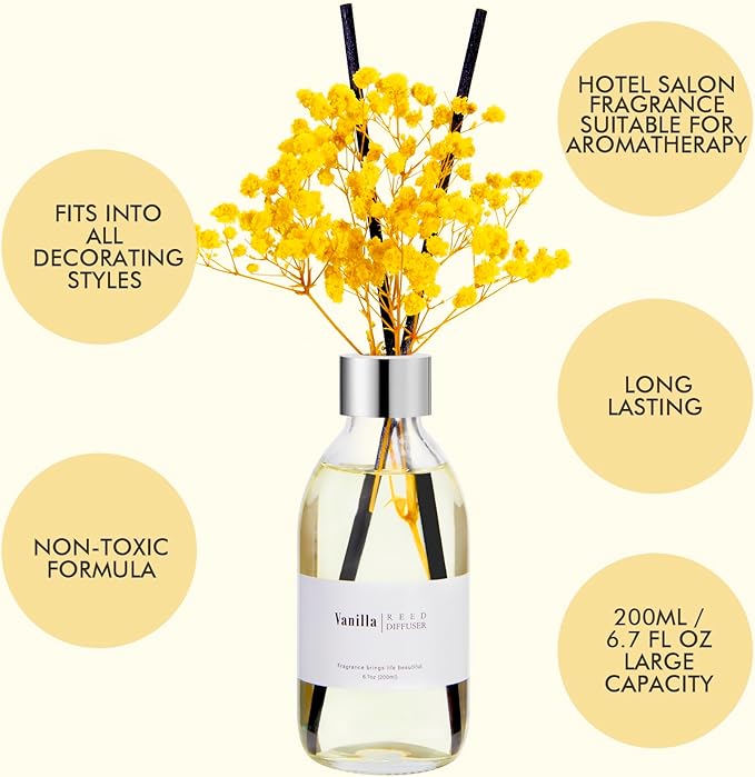 - Long Lasting Scent: Natural rattan reeds ensure that the scent is released slowly and consistently over time, so you can enjoy the sweet vanilla scent for weeks or even months, depending on your environment