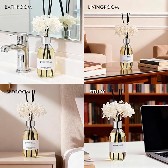 - Long Lasting Scent: Natural rattan reeds ensure that the scent is released slowly and consistently over time, so you can enjoy the subtle jasmine scent for weeks or even months, depending on your environment