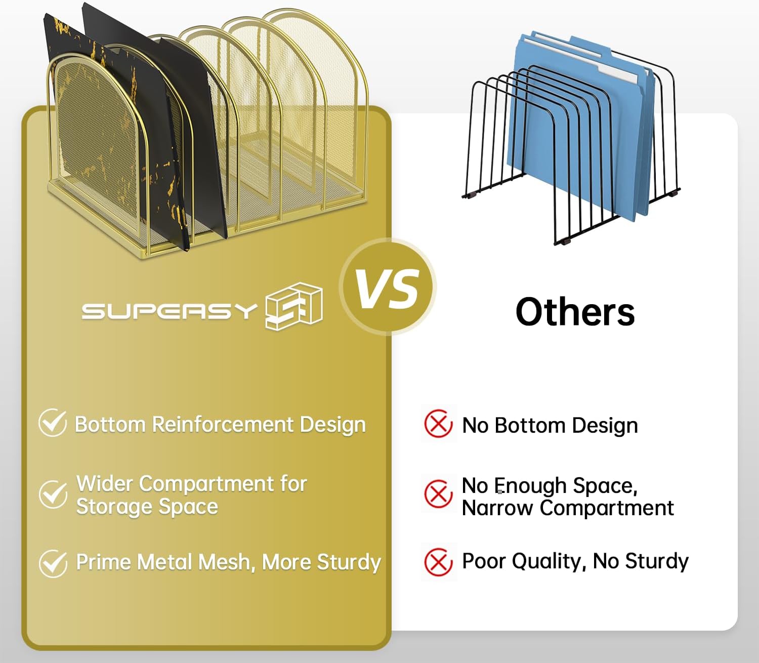 - [Space Saving] If your desk is cluttered with files, try using SUPEASY file rack to organize it. The vertical compartment design allows you to easily find the folders you need, keeping your desktop tidy.