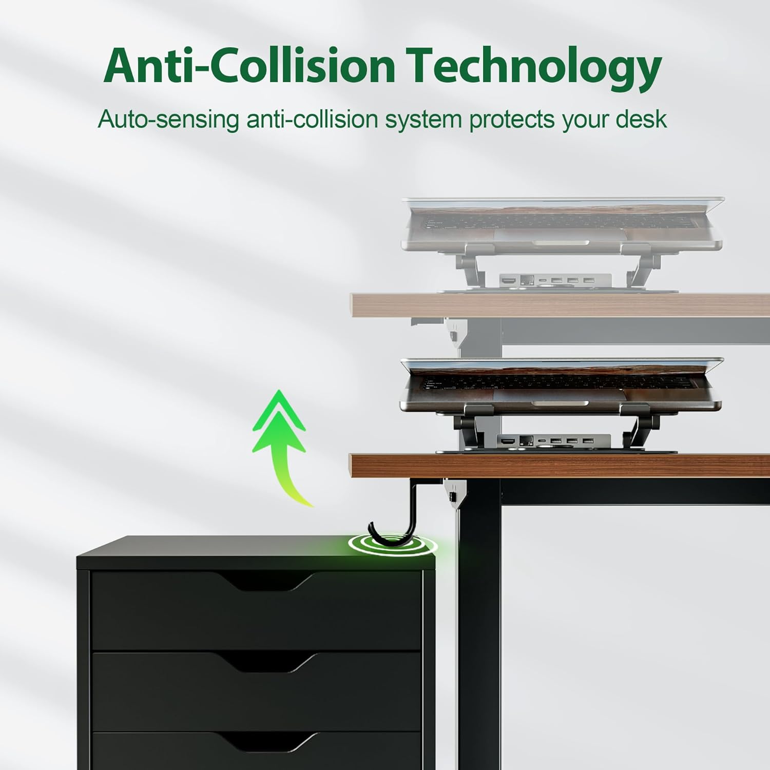 - 【Smart Anti-Collision System】The desk is equipped with an intelligent detection system that stops movement when obstacles are encountered. For the best protection, please avoid placing items under the desk during height adjustment.