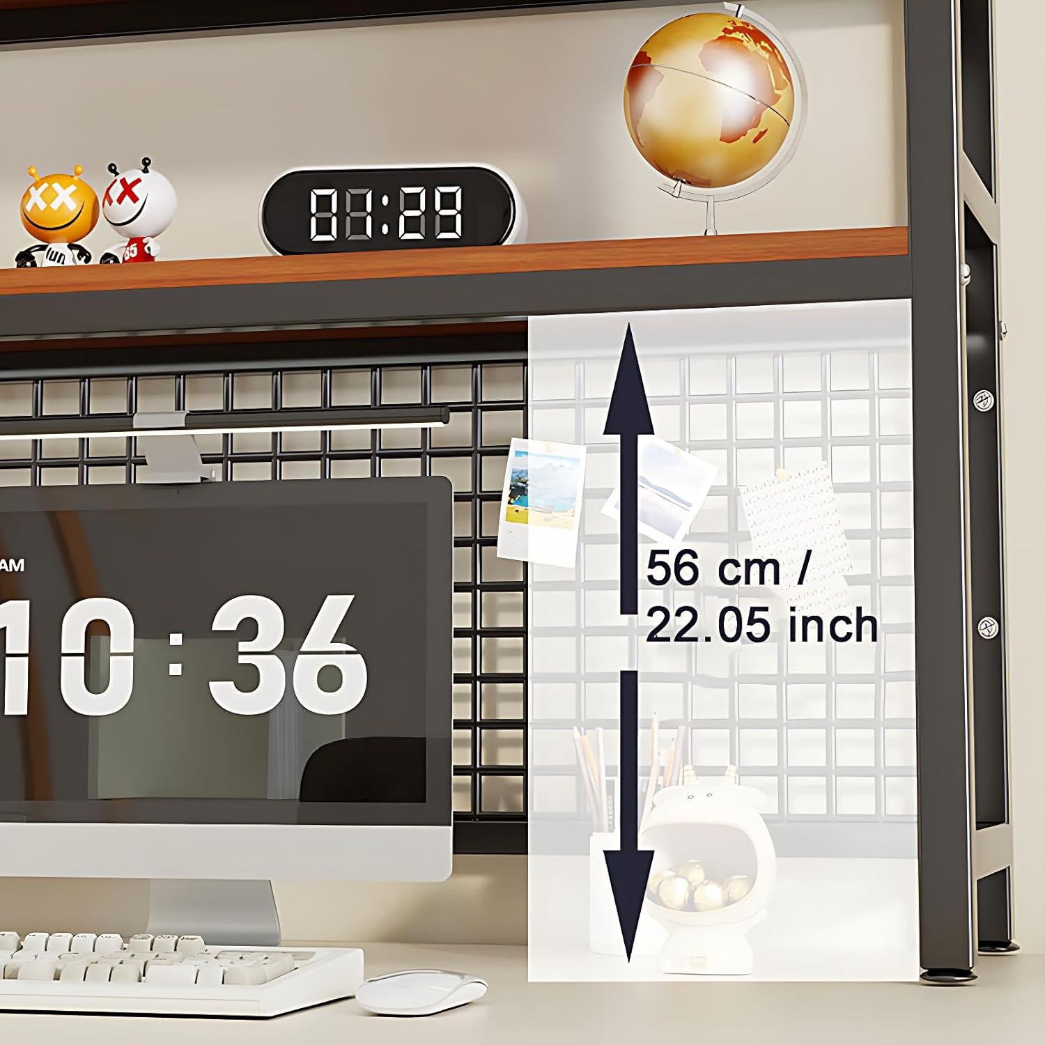 - MULTI-FUNCTIONAL STORAGE: Store books, plants, alarm clocks, and office supplies on the shelves, while the front metal grid holds headphones, sticky notes, or photos for quick access.