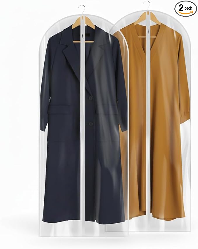 60” All Clear Garment Bags for Travel - PEVA Waterproof Suit Cover with Zipper for Hanging Clothes, long Gowns - Durable Dresser for Closet Storage, Dustproof & Moisture Resistant - 60”/2 Pack
